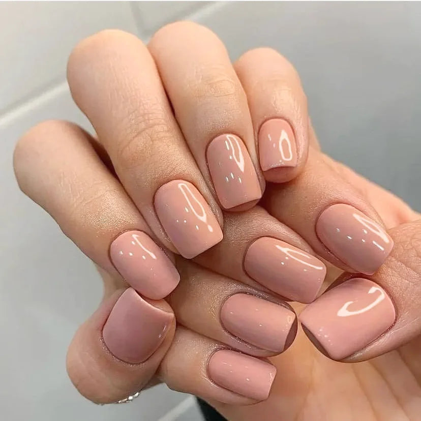 GETADME 24Pcs Solid Color Wine Red Design Fake Nail Short Square Press on False Nails Simple Detachable Finished Full Cover Nail Tips