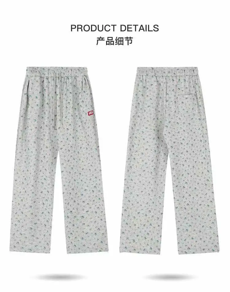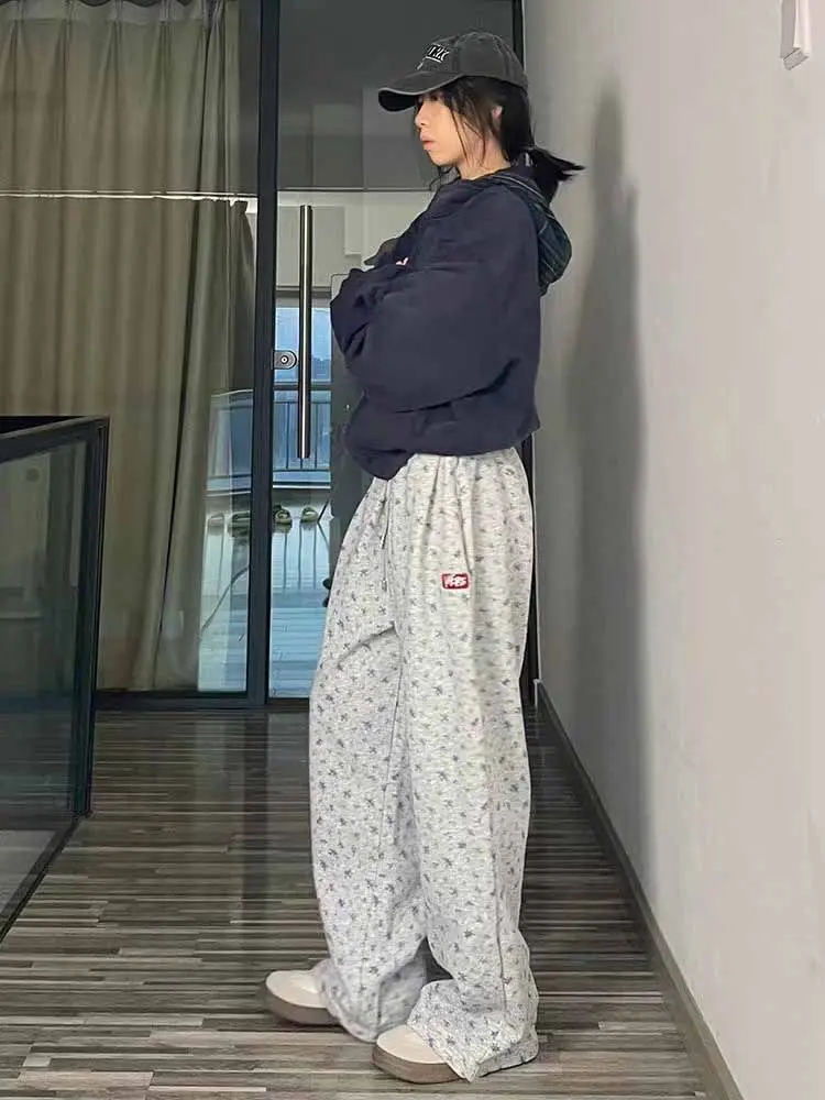 GETADME American Floral Lazy Pants Women's Autumn Winter New Women Personalized Simple INS Thickened High Waist Straight Wide Leg Pants