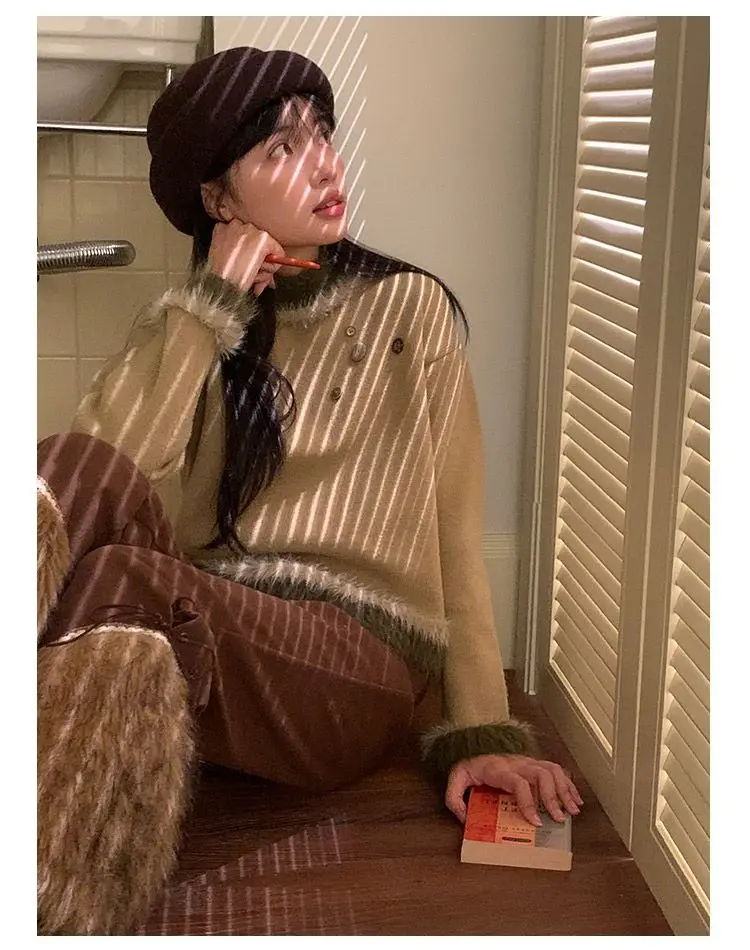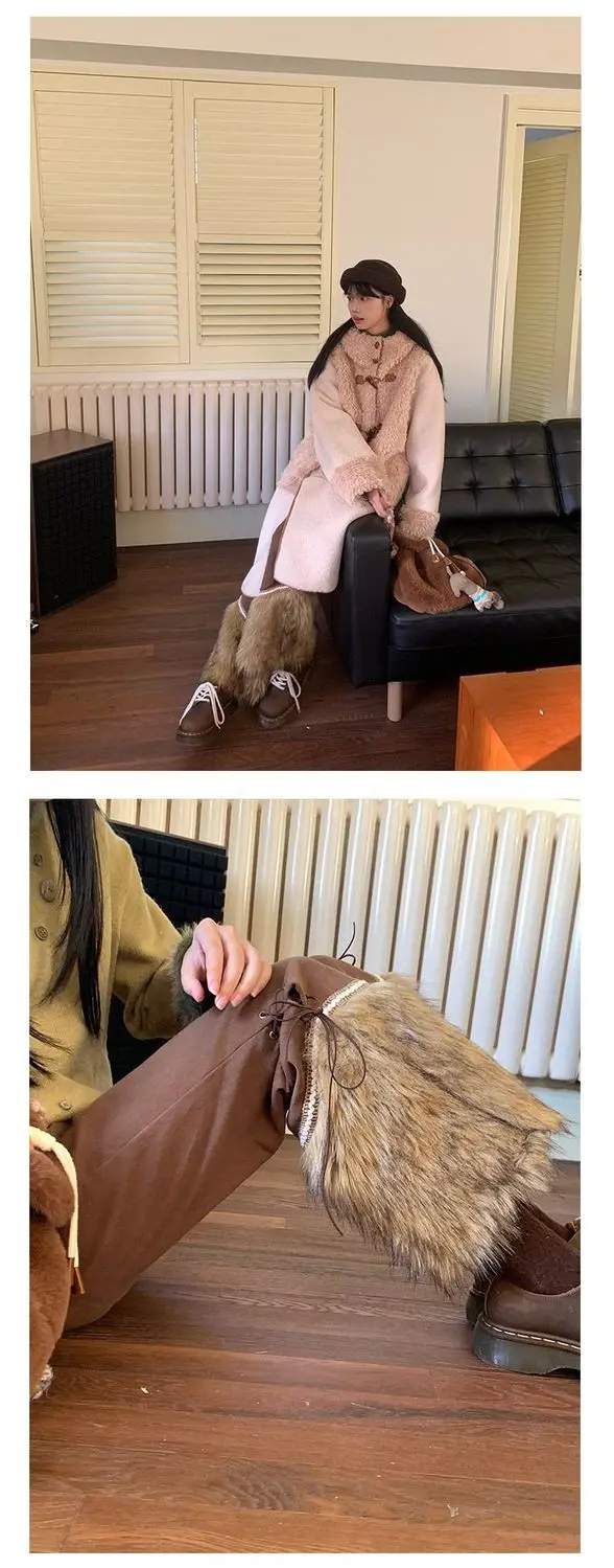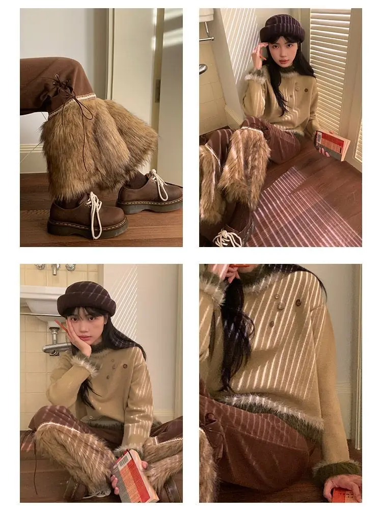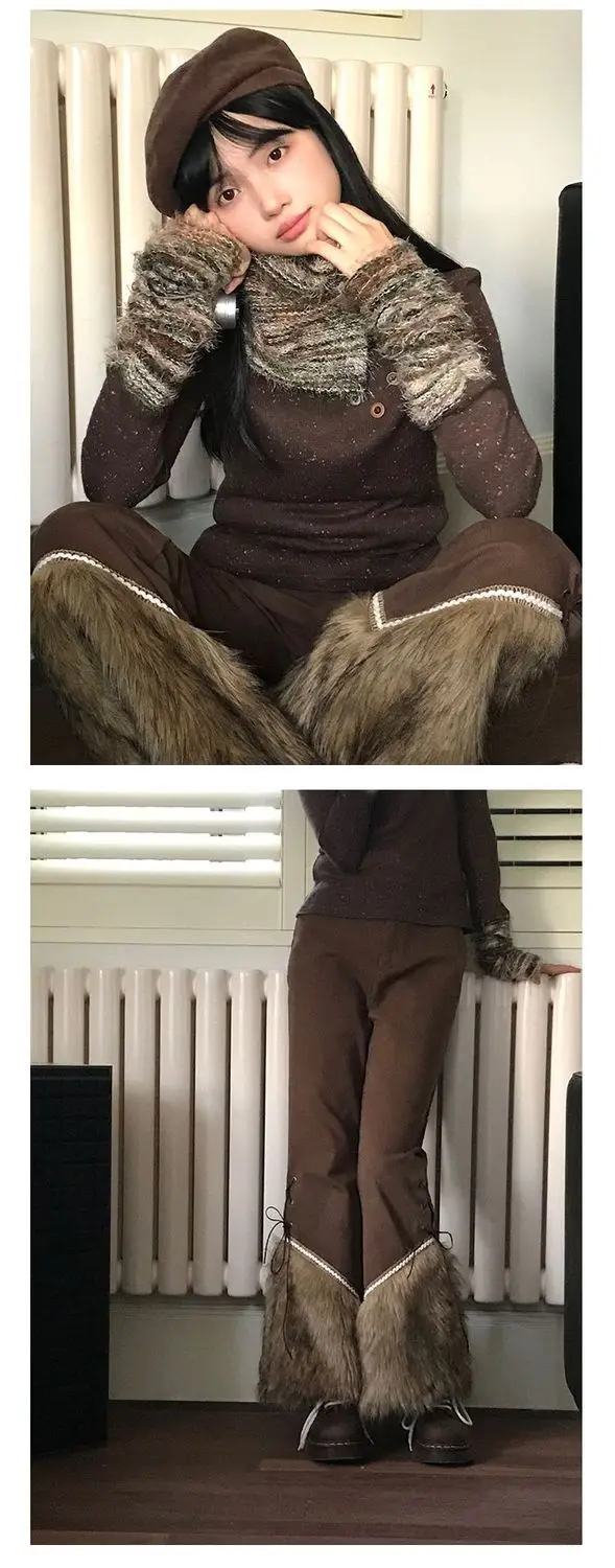 GETADME American Retro Brown Furry Edge Wide Leg Pants Fashion High Street Loose Wide Leg Pants Streetwear Women Y2k Clothes Hot Sales