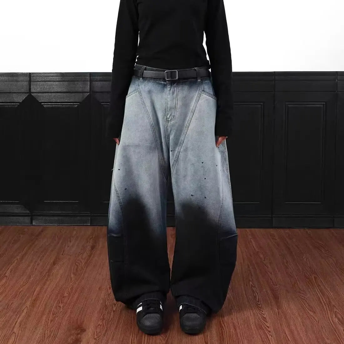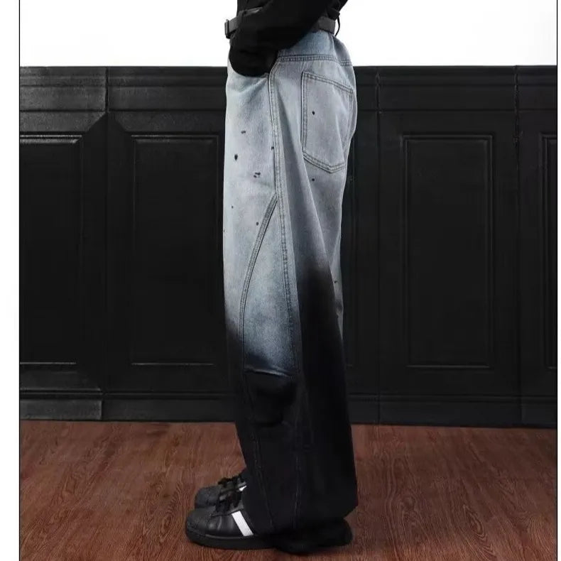 GETADME American retro gradient high street splashed ink personality loose curved knife hip-hop jeans men and women trendy casual pants