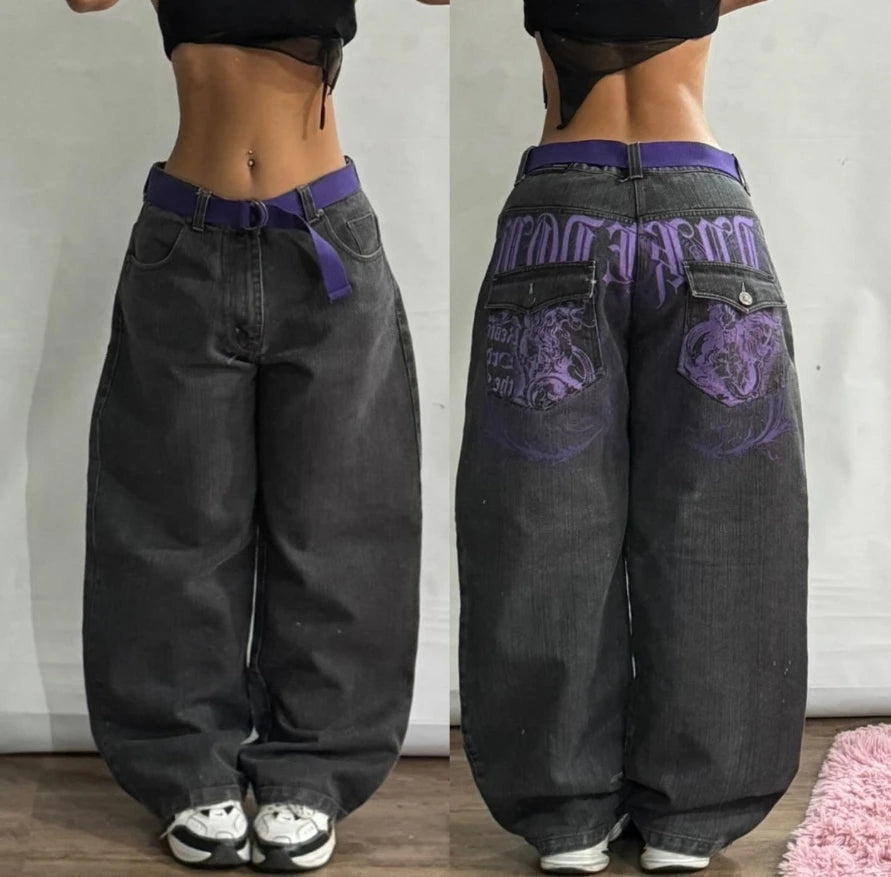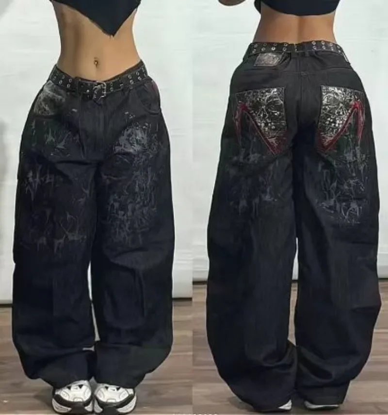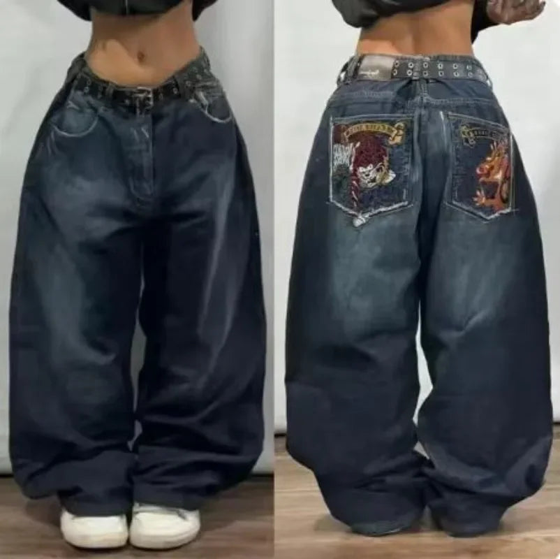 GETADME American Retro Letter Embroidered Washed Jeans Women Y2K New High Street and High Waist Loose Fashion Joker Straight Mop Pants