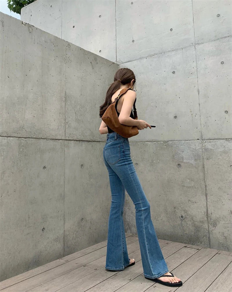GETADME Autumn And Winter New Retro Micro Flared Jeans With High Waist Slim Fit Lifted Hips Wide Legs Flared Jeans For Women