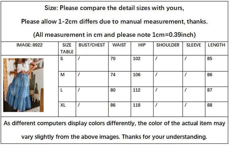 GETADME Bohemia Maxi Long Skirts Women Spring Summer Elastic High Waist Jean Skirt Ladies Vintage A-Line Ruffle Pleated Denim Skirts