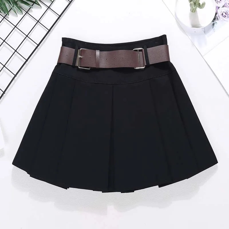 GETADME Brown Belted Mini Skirt Low Waisted Pleated Skirt with Belt Women Academia Aesthetic Vintage Outfit