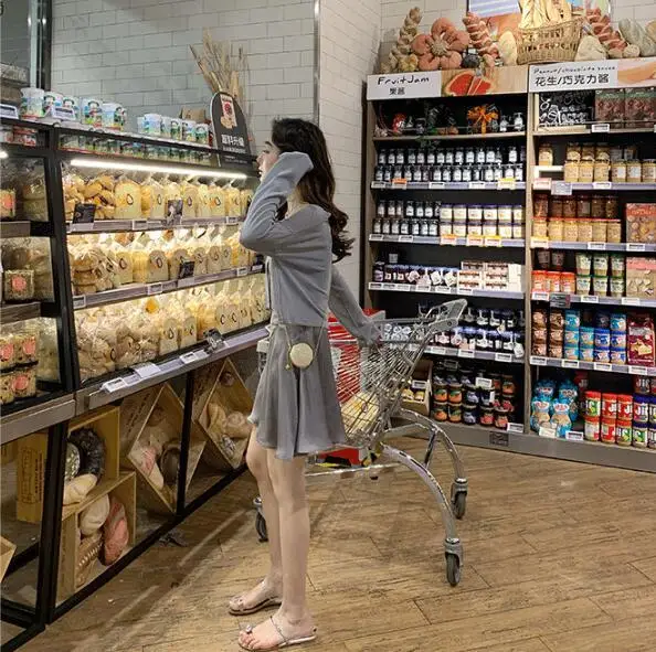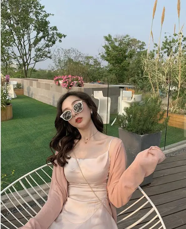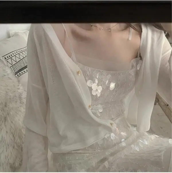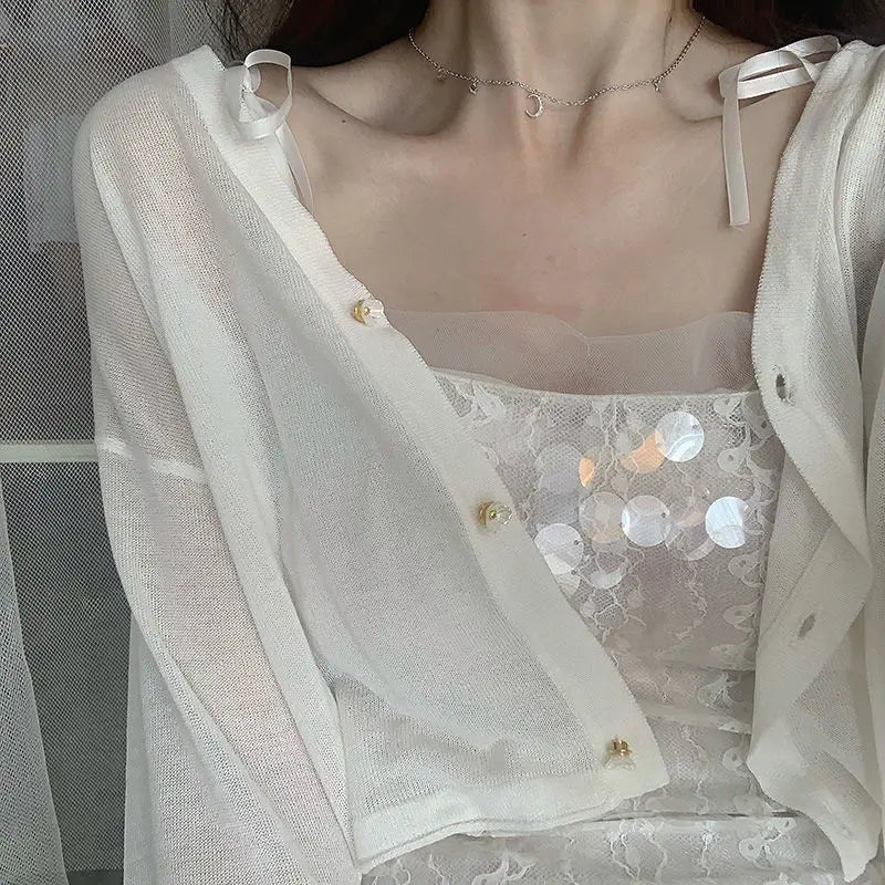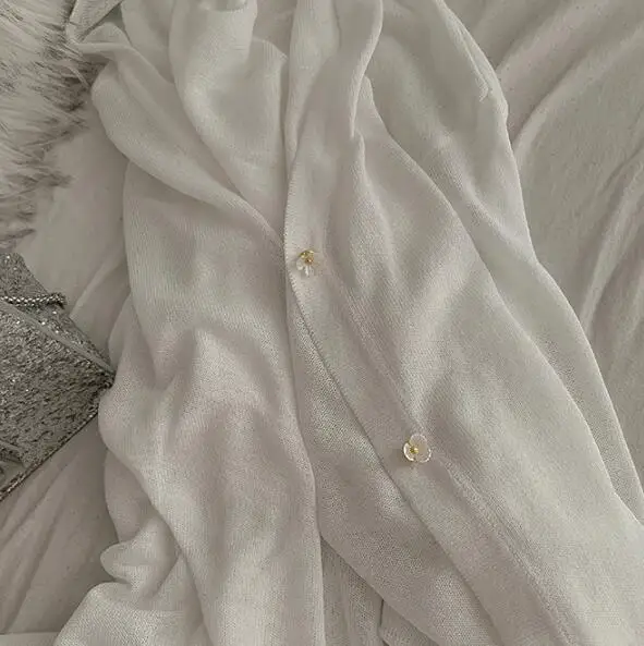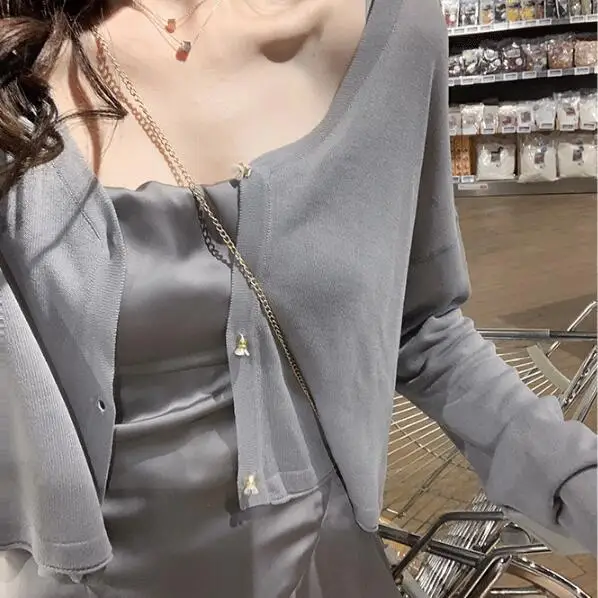 GETADME Cardigan Women Long Sleeve Crop Tops Solid Summer Thin Sun-proof Loose Outwear V-neck Knitted Korean Style Girls Elegant Lovely