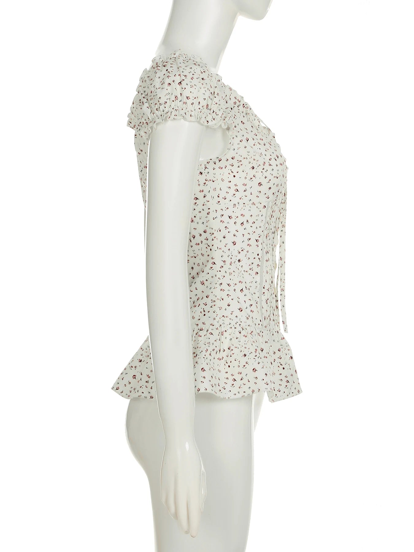 GETADME Cuteandpsycho Floral Print French Lace-up Fold Shirt Sexy Slim Classic Fashion Streetwear All-match Top Button Chic 90s Clothes