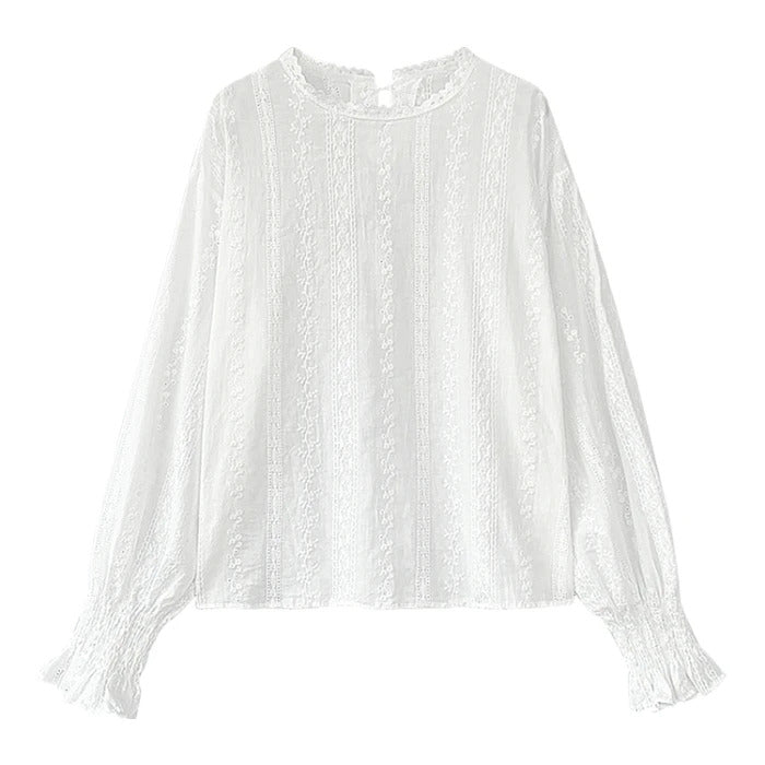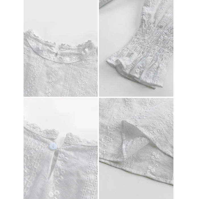 Getadme Vintage style lace shirt Flare sleeve Hollow out White blouse Casual clothing New fashion Women lace Tops Blusa
