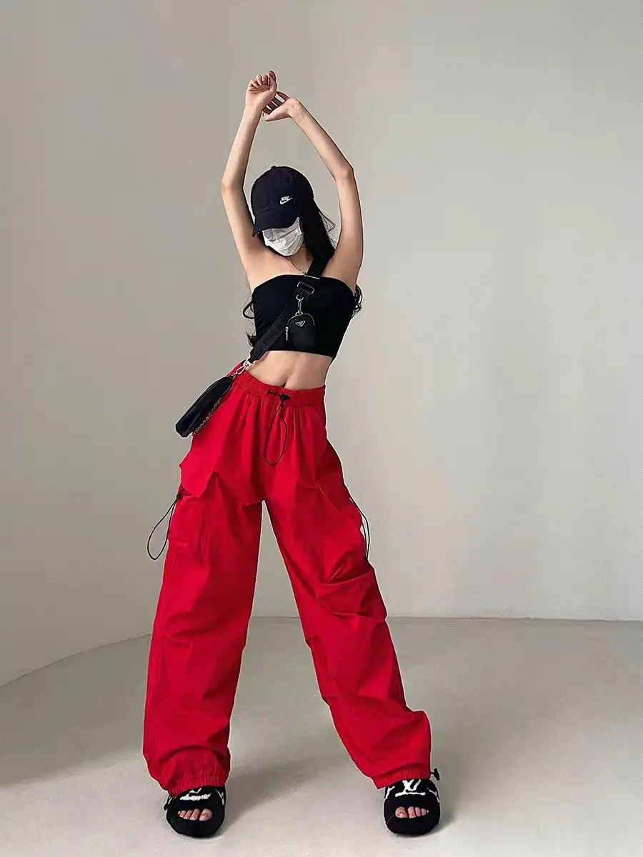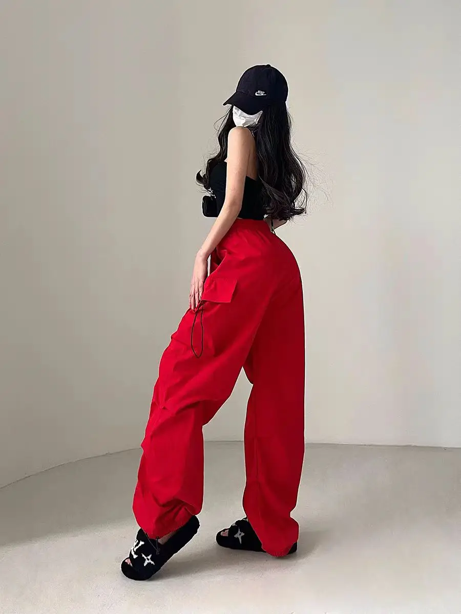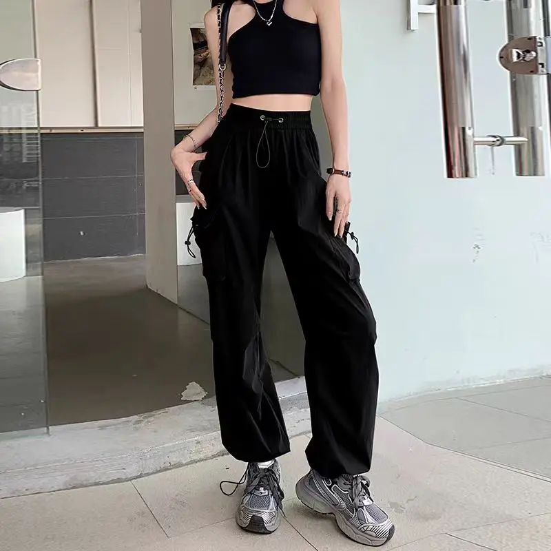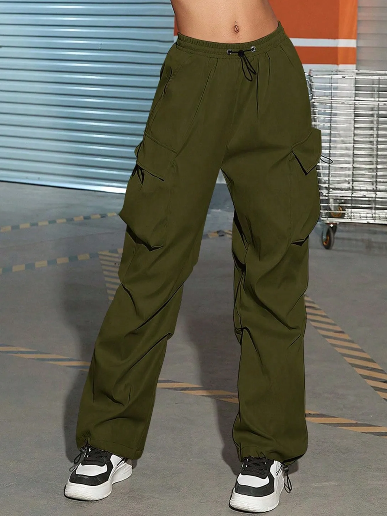 GETADME Drawstring Waist Flap Pocket Side Parachute Cargo Pants