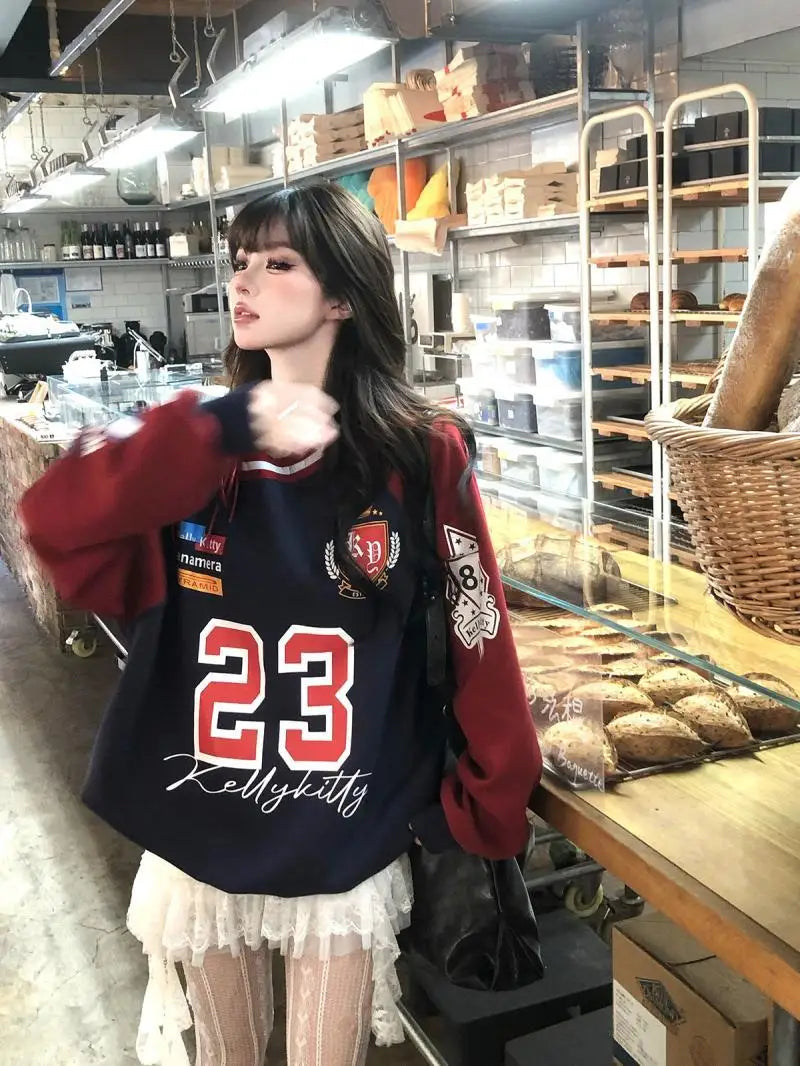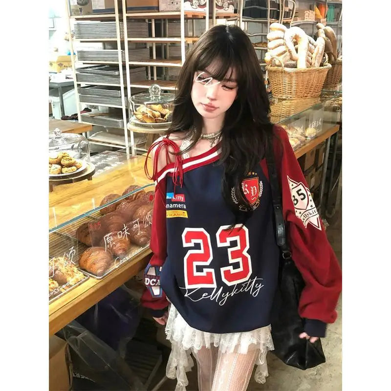 GETADME Loose Shoulder Strap Design Sweatshirt for Women Early Autumn New Casual Sports Versatile Top