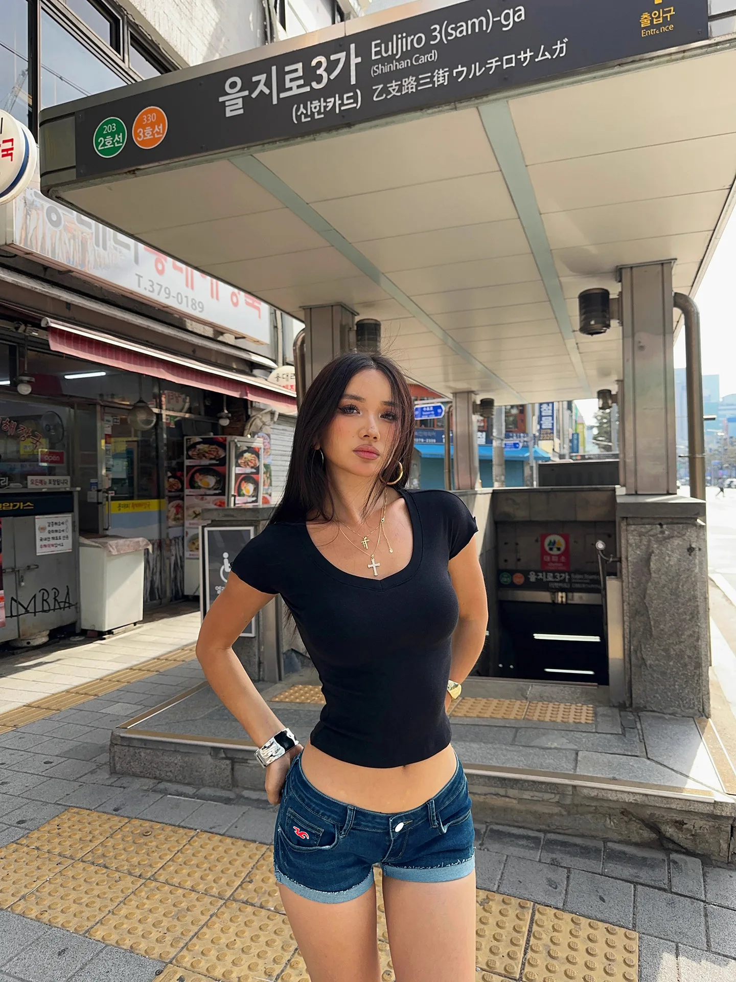 GETADME Low Waist Curling Knock Short Jeans Elastic Ripped Denim Shorts Retro Y2k Shorts Women