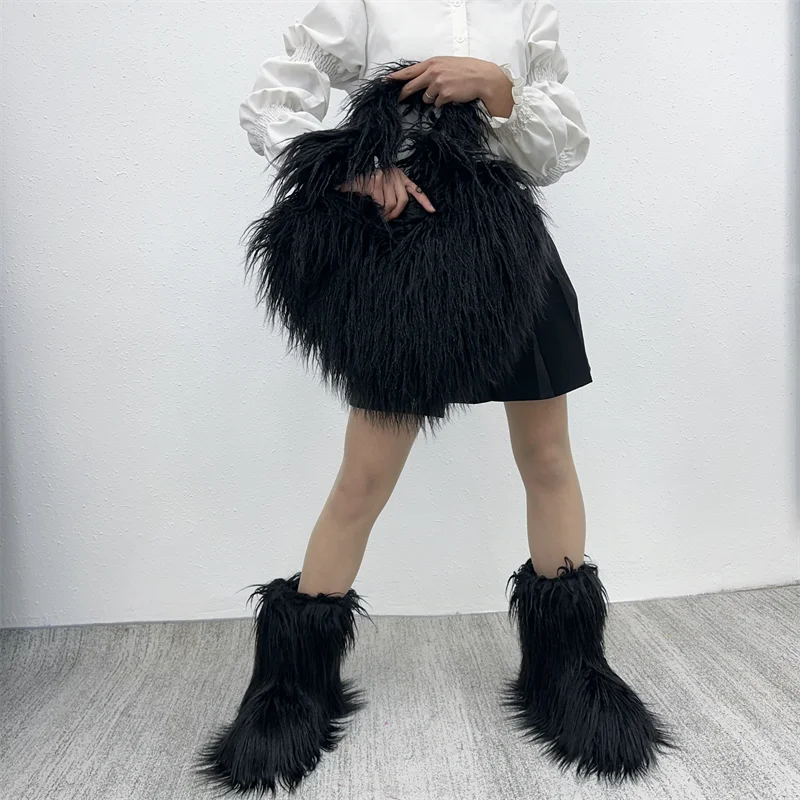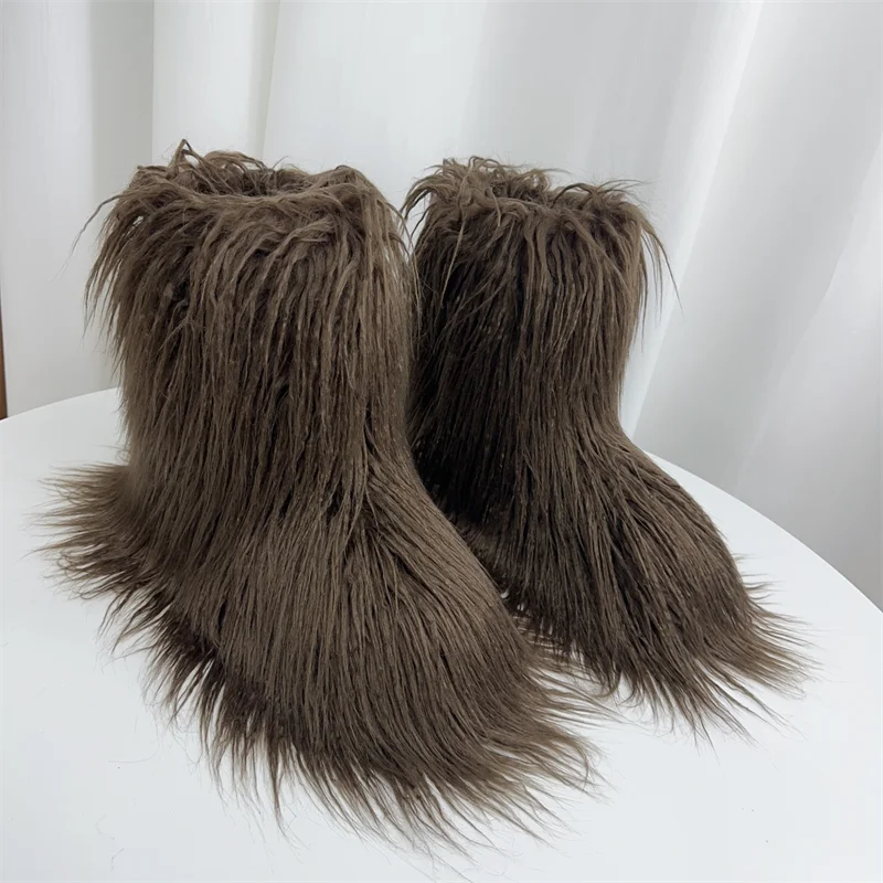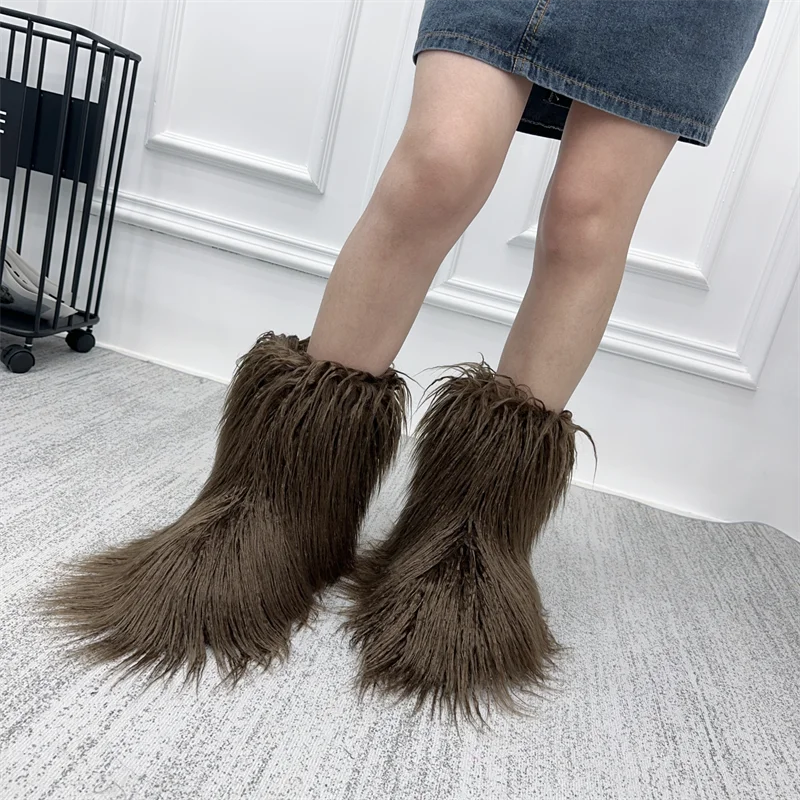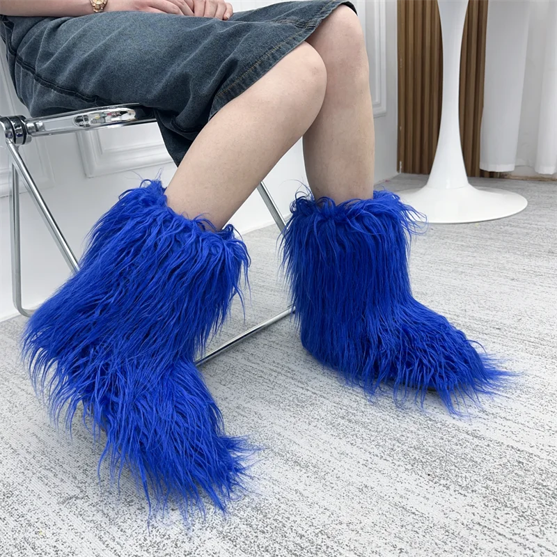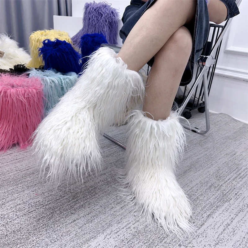 GETADME New Fashion Mongolia Fur Woman Snow Boots Rainbow Lady Winter Boots Warm Boots Women Boots Shoes Bottes de neige femmes