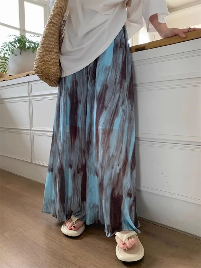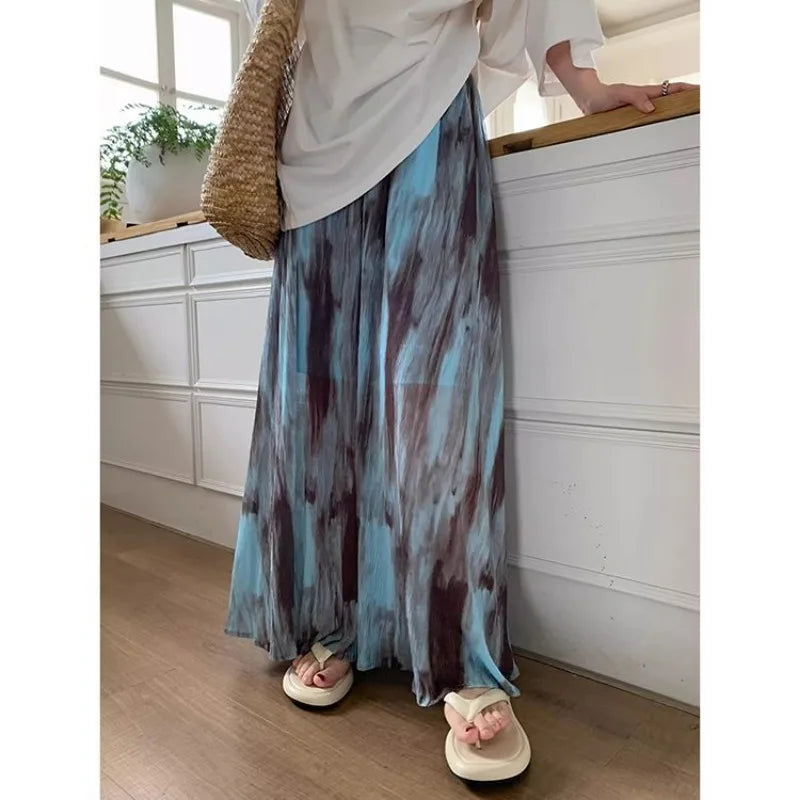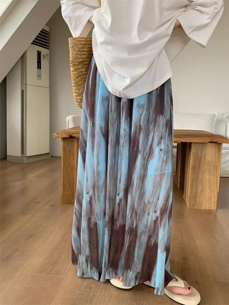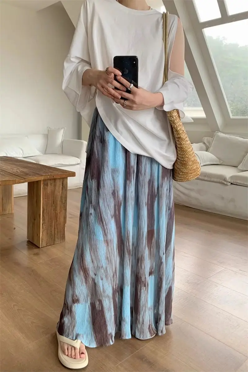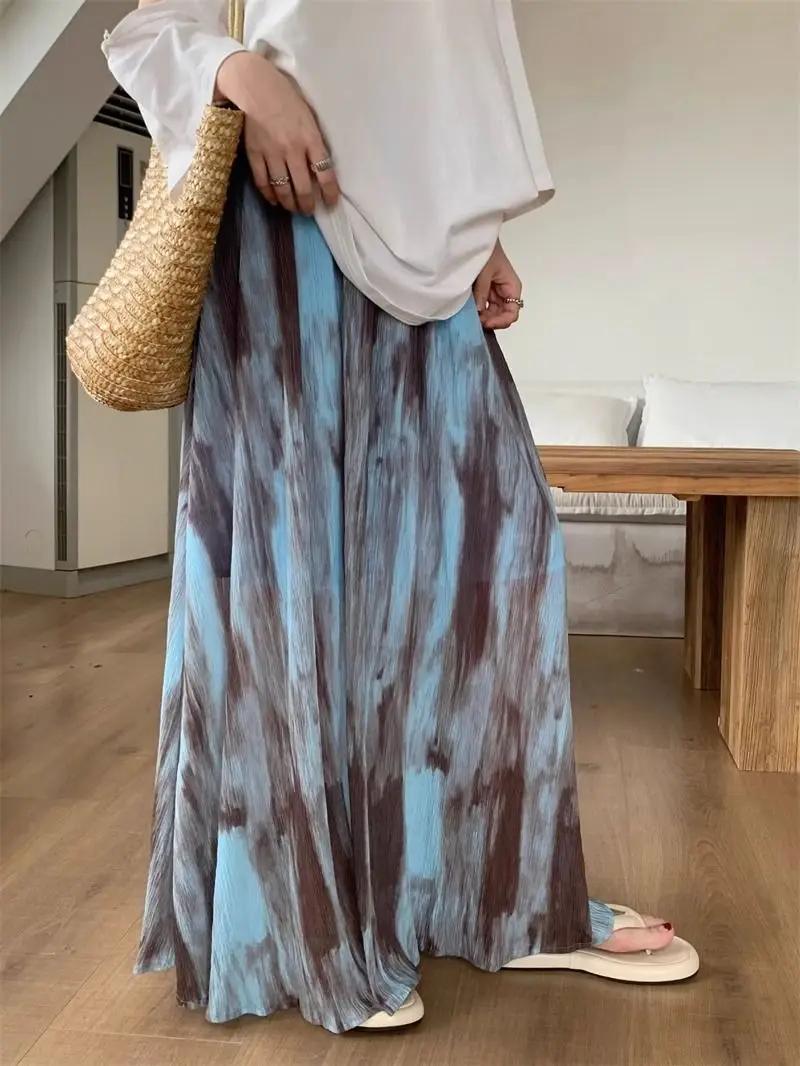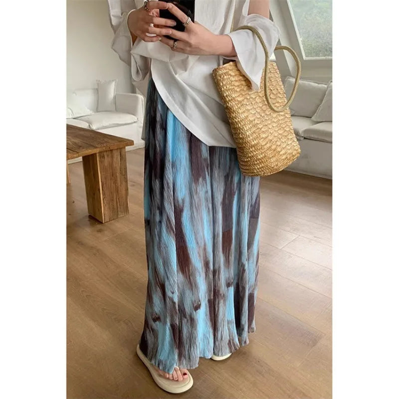 GETADME Retro Tie Dye Midi Skirt for Women in Early Spring Vacation Style, High Waisted A-line Skirt Hanging Long Skirt, Big Swing Skirt