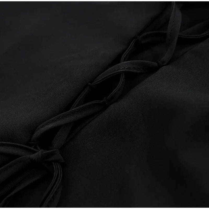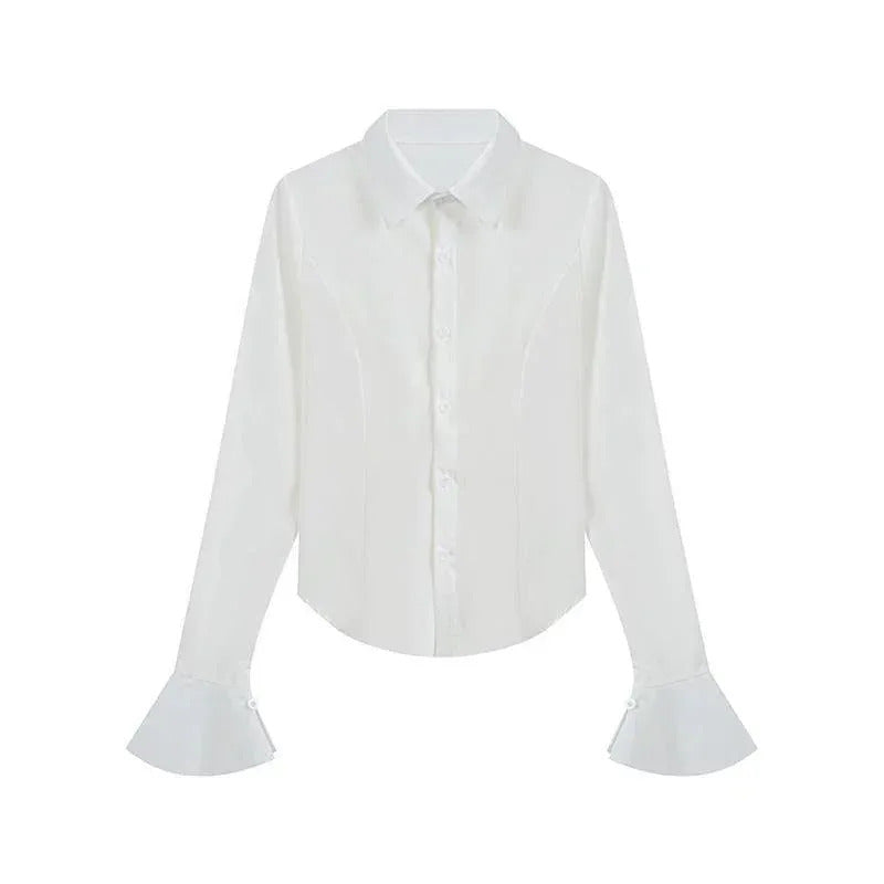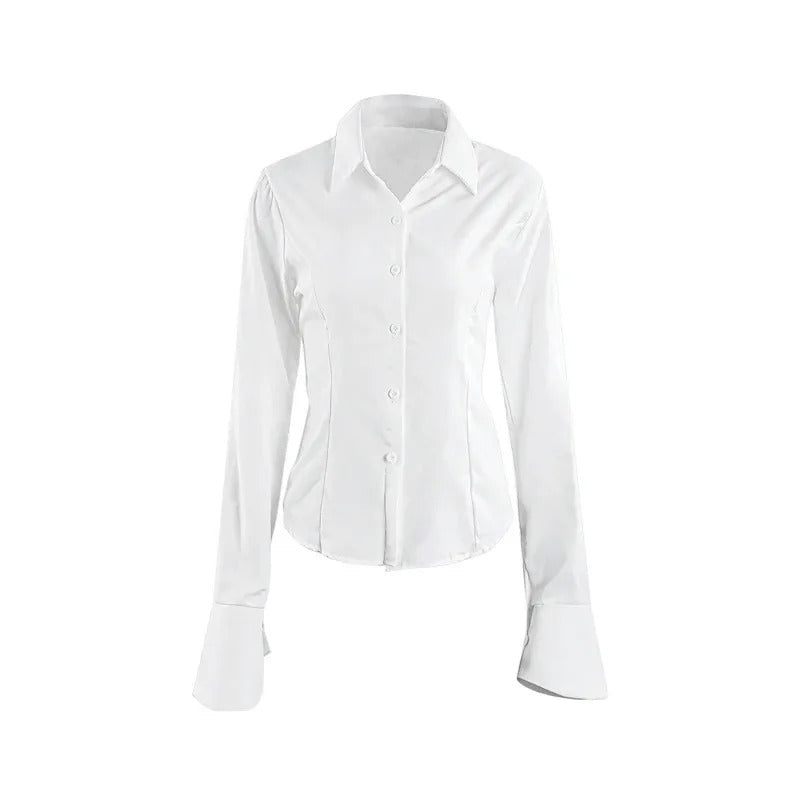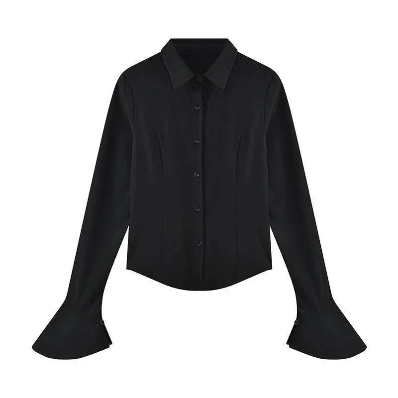 GETADME-Sexy Slim Flared Sleeve Women's Shirt Solid Lapel Single-breasted Back Bandage Tunic Female Blouses Spring Trend New Lady
