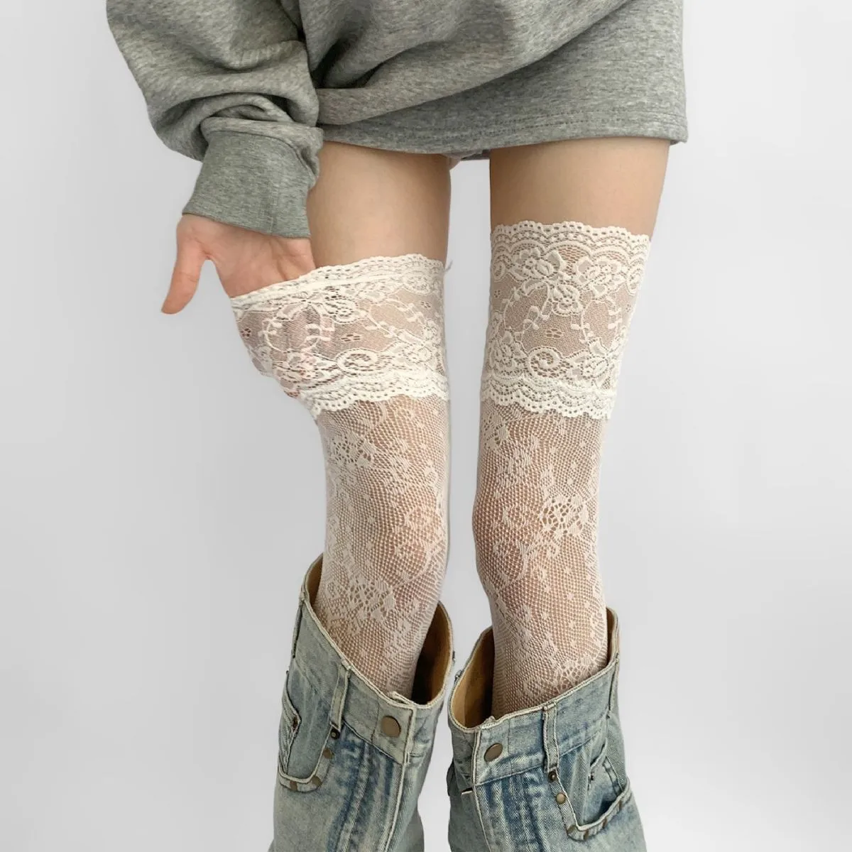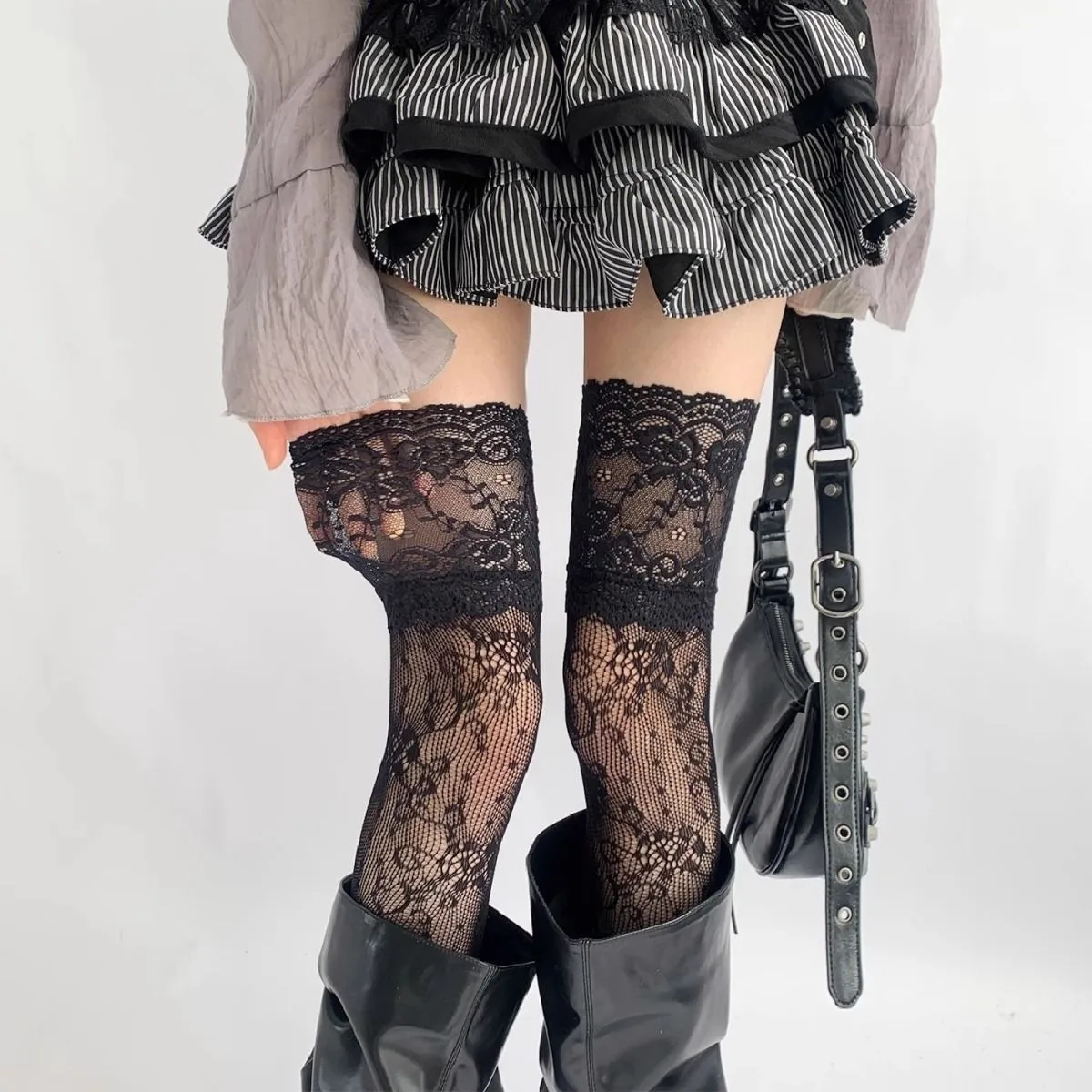 GETADME Socks Woman Autumn/Summer Solid Color Thigh High Lace Stockings Women Over The Knee Stockings Lolita Girls Long Leg Boot Socks #