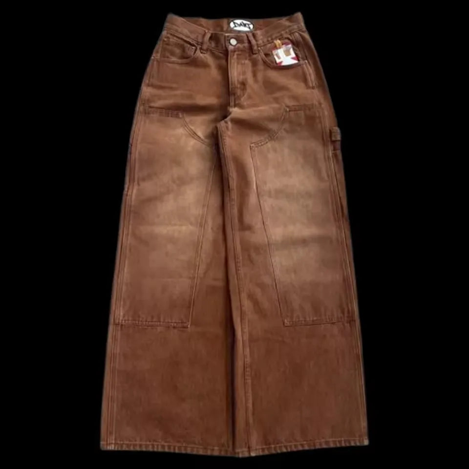 GETADME Streetwear Vintage Jeans Y2K Clothes Womens Vintage Pocket Sequin Washed Blue Baggy Jeans Mid Rise Slim Fit Trousers