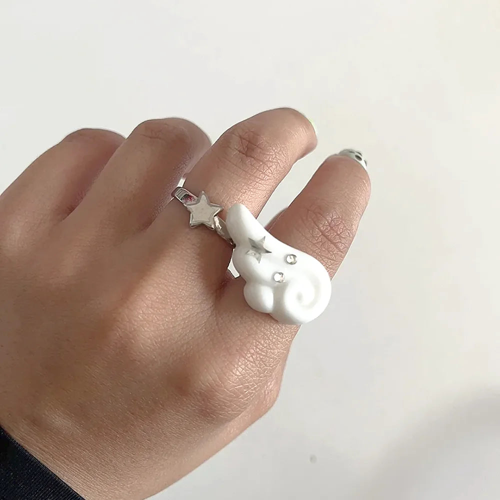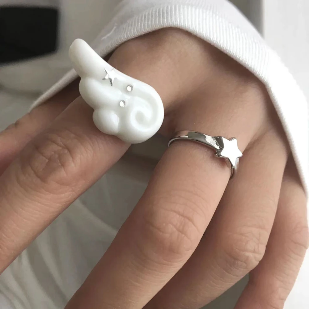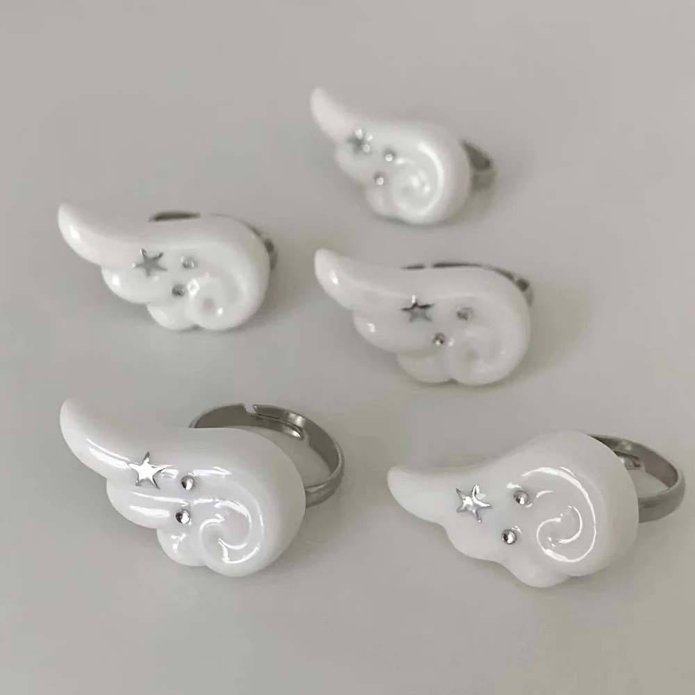GETADME Subculture Cute Angel Wing Ring INS Star Opening Adjustable Rings Unisex Punk Gothic Jewelry Accessories Gift