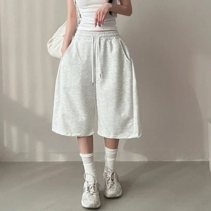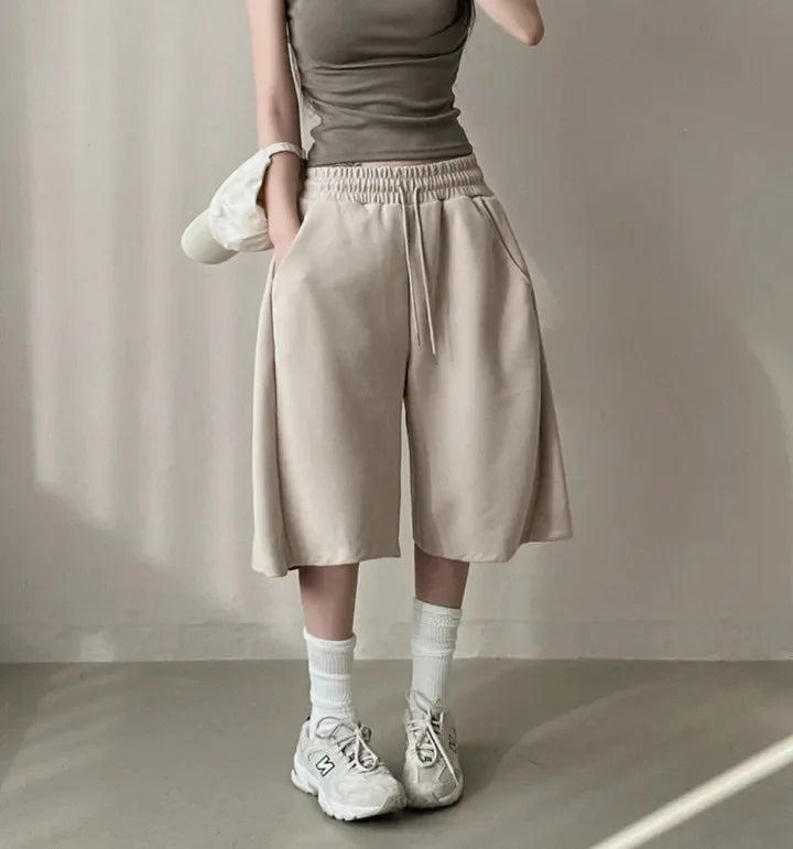 GETADME Summer Drawstring Wide Leg Shorts Women Fitness Running Loose Casual Large Sports Shorts Sweat Short High Elastic Lace Up Pants
