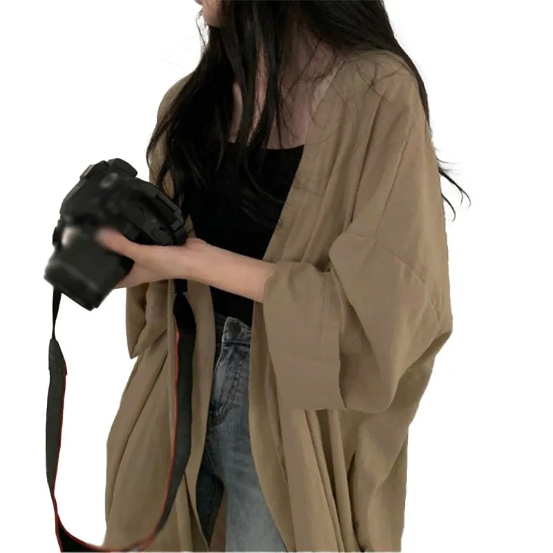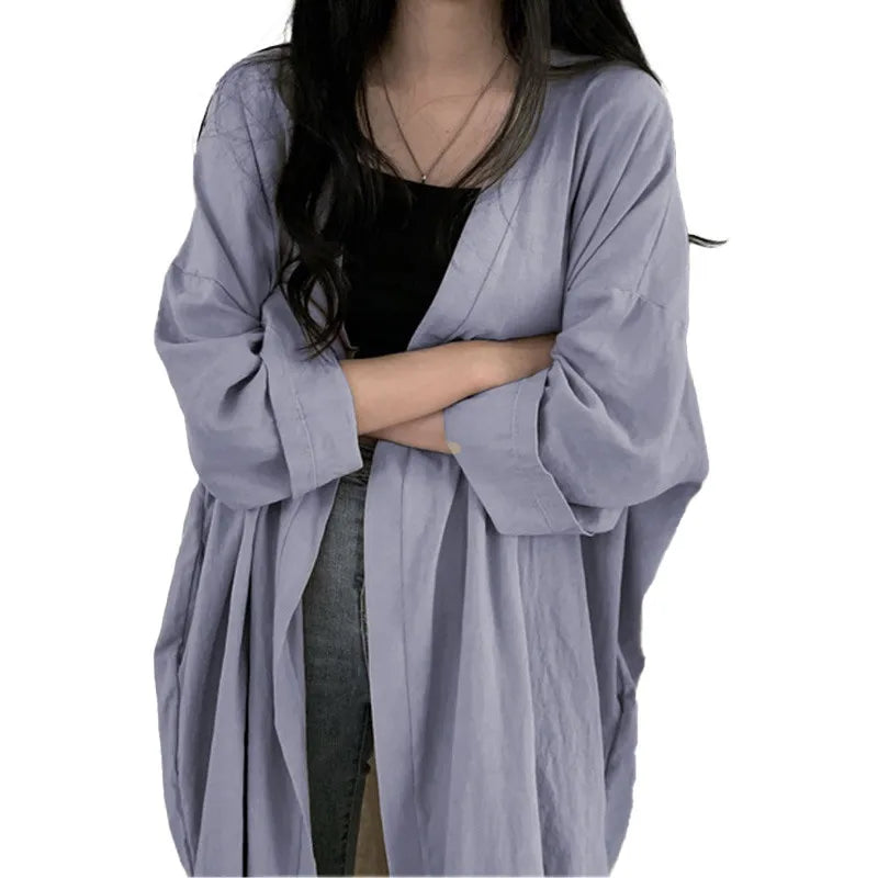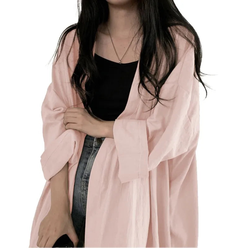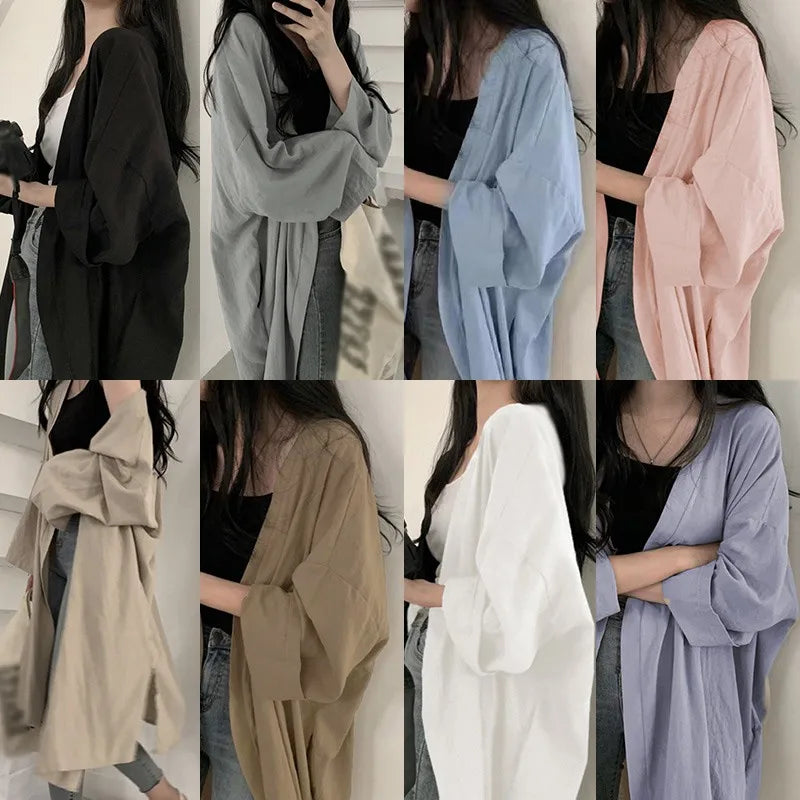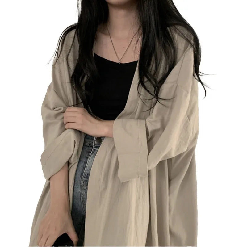 GETADME Summer Korean Version Loose Fit Women's Long Cardigan Summer Solid Color Breathable Thin Windbreaker Sunscreen Clothing