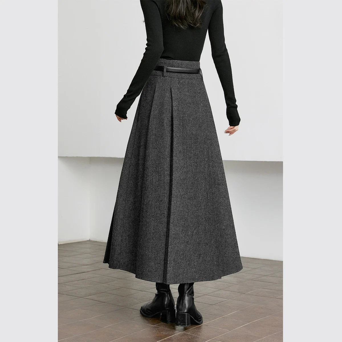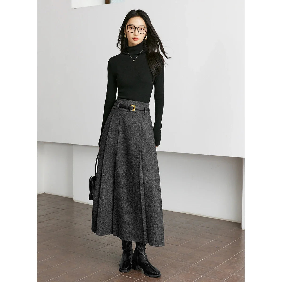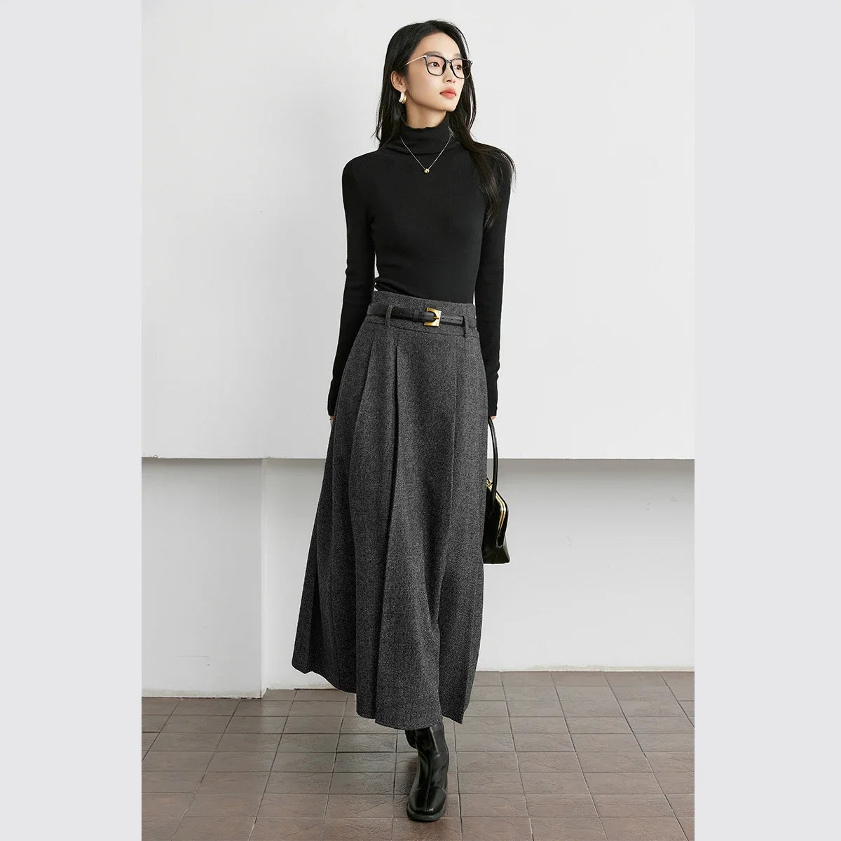 GETADME VIMLY Elegant Simple 37.2% Wool Blended Pleated Skirt Winter High Waist Stereo Heavy Duty Skirt For Women Office Lady Clothes