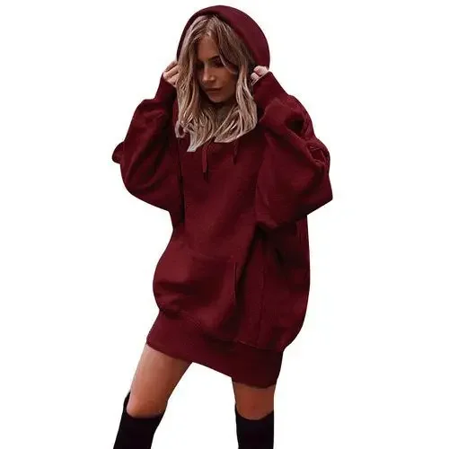GETADME Women's Autumn/Winter Thickened Hooded Pullover Sweatshirt Solid Color Casual Loose-Fit Long Sleeve Top Warm Comfortable