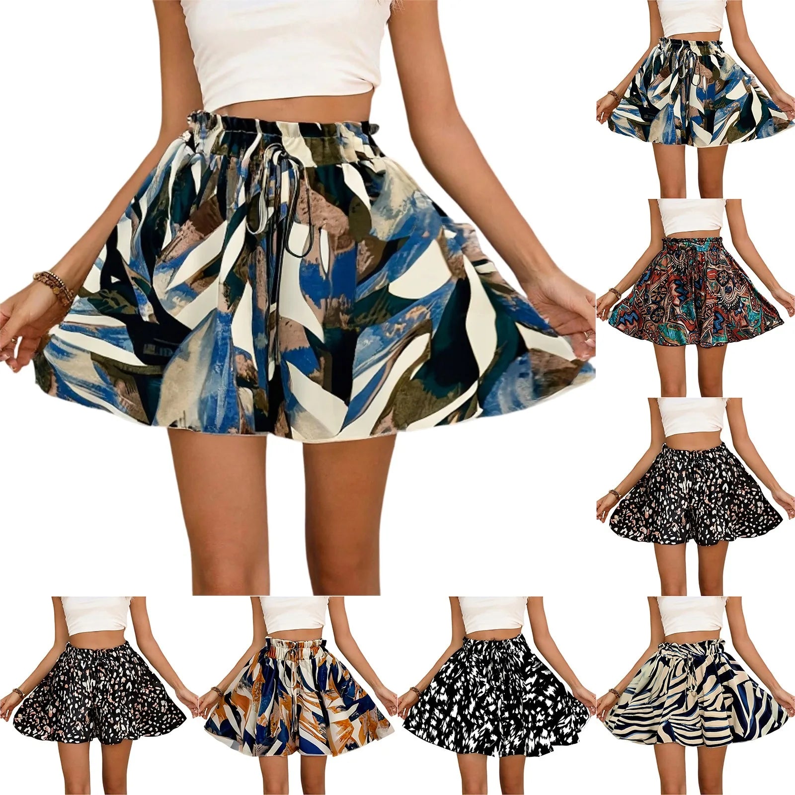 GETADME Women's Bohemian shorts high waist drawstring loose shorts lightweight comfortable beach shorts print wide leg short pants