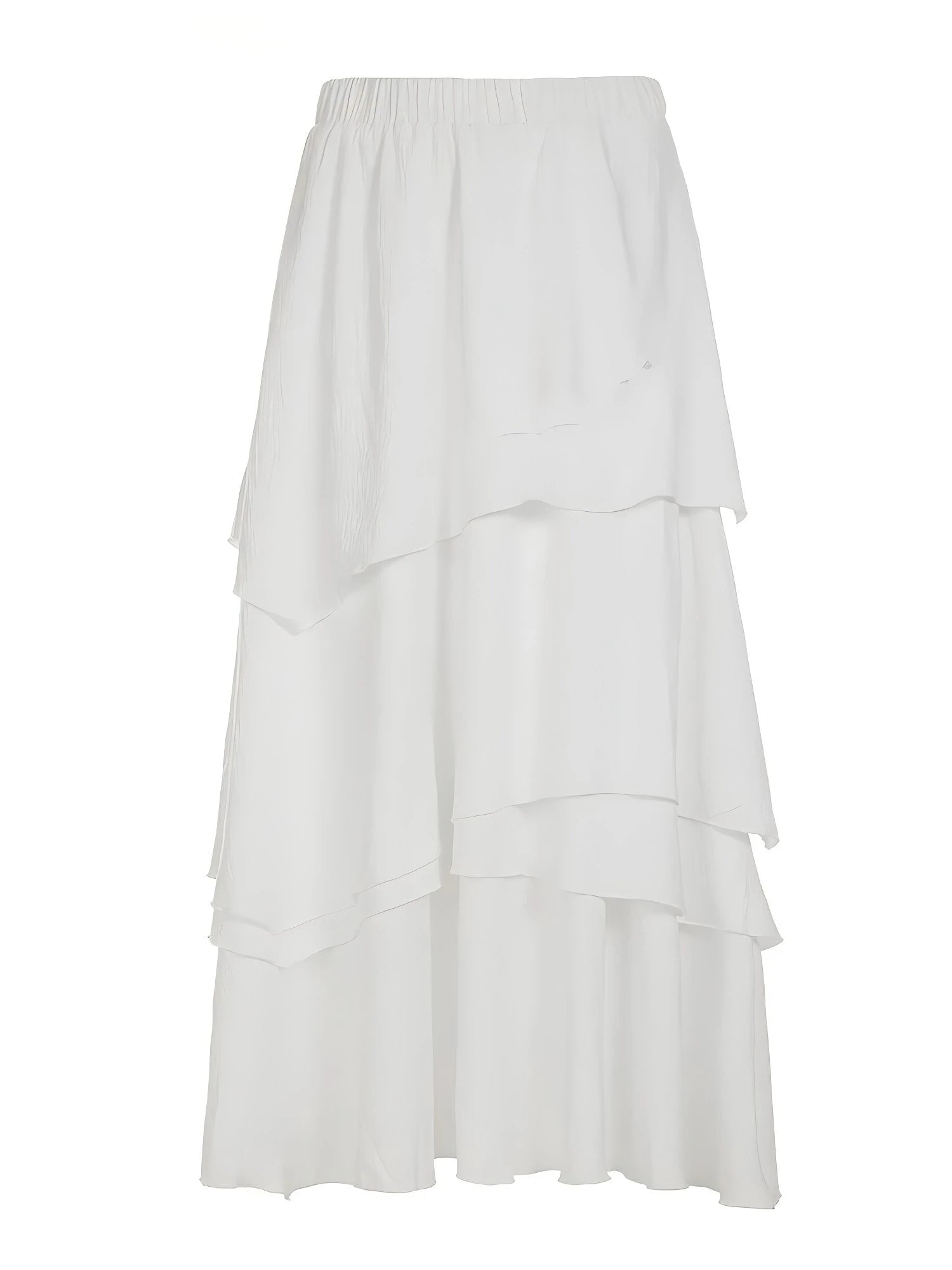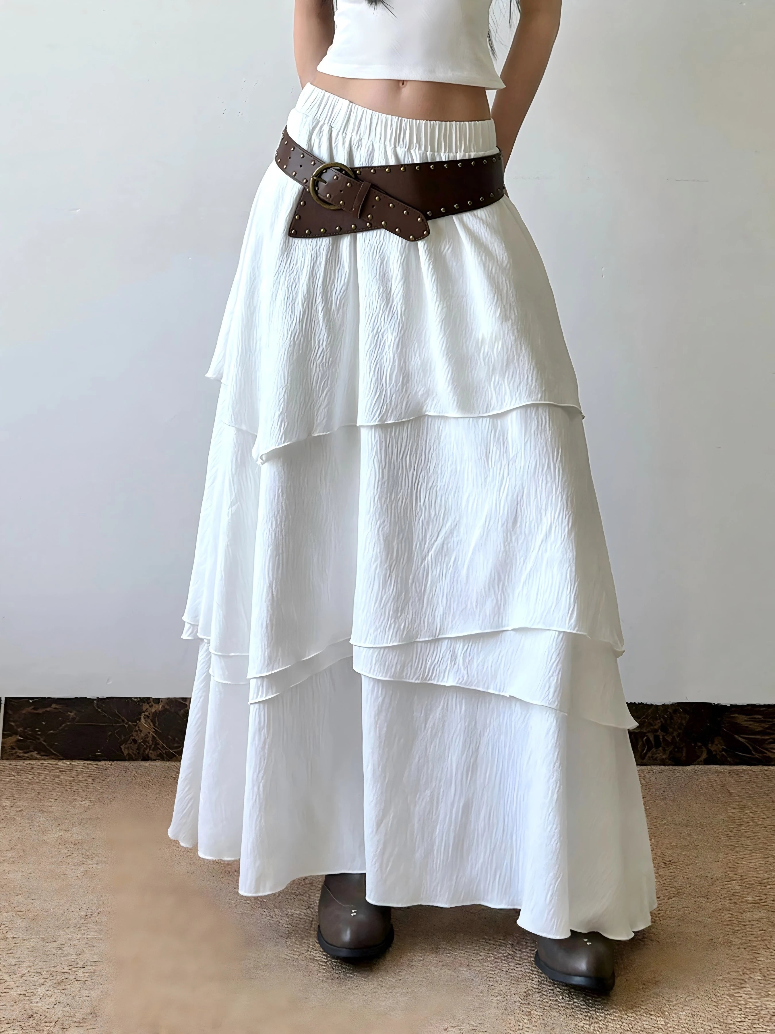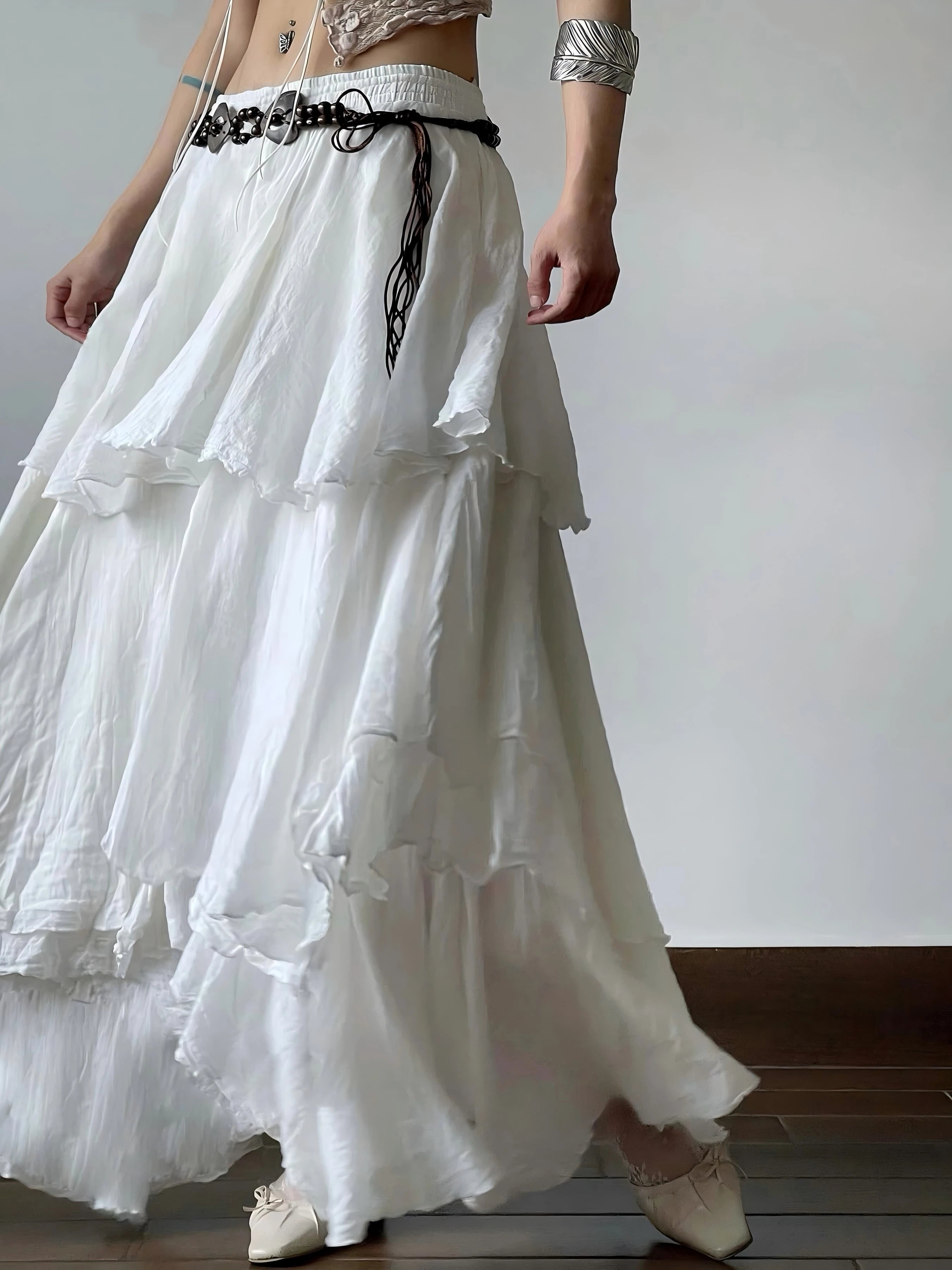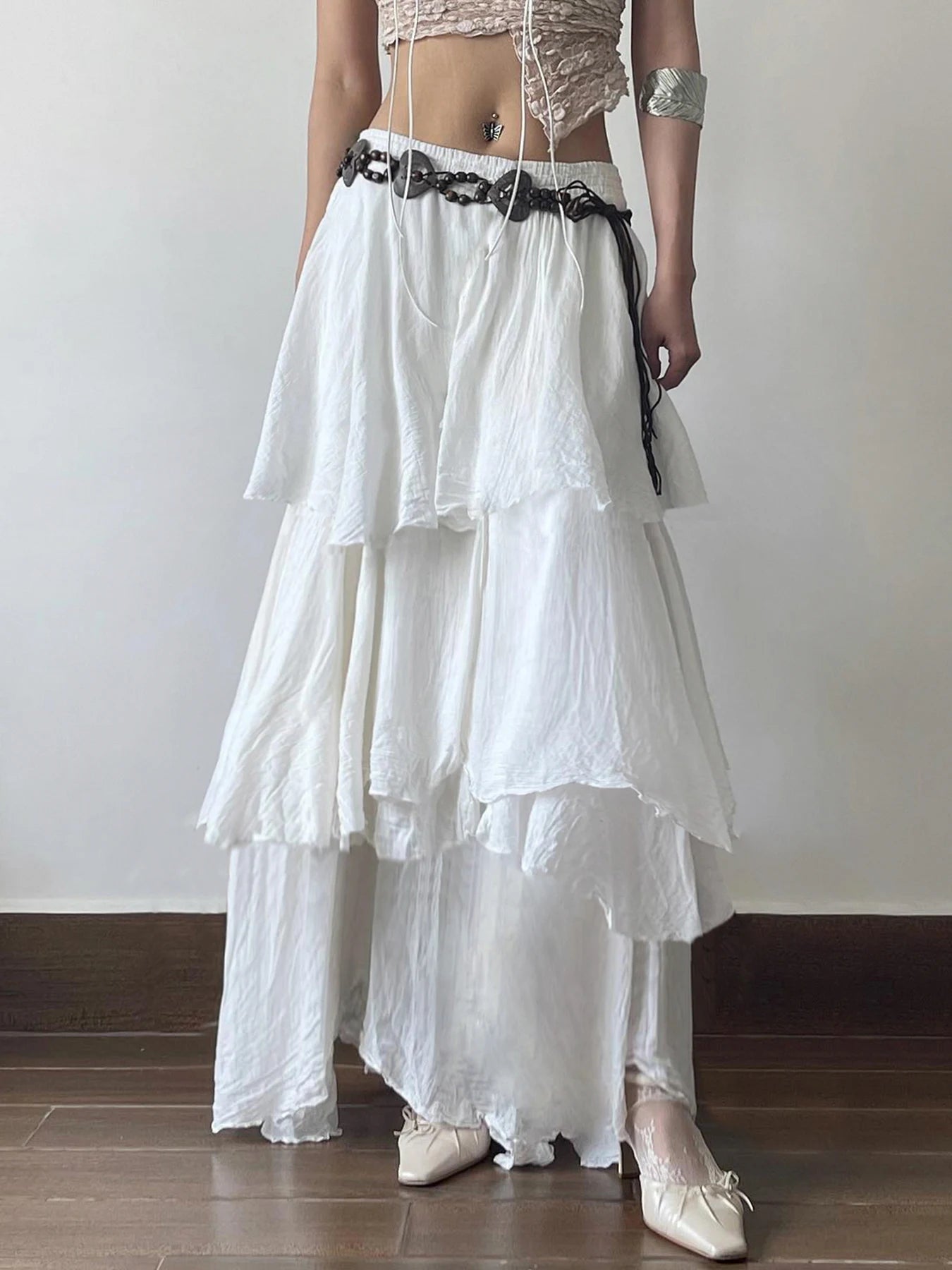 GETADME Women's Elegant High Waist Long Skirt - Y2K Vintage 90S Style Multi-Layer Flowy Chiffon Skirt White Summer Beach Holiday Casual