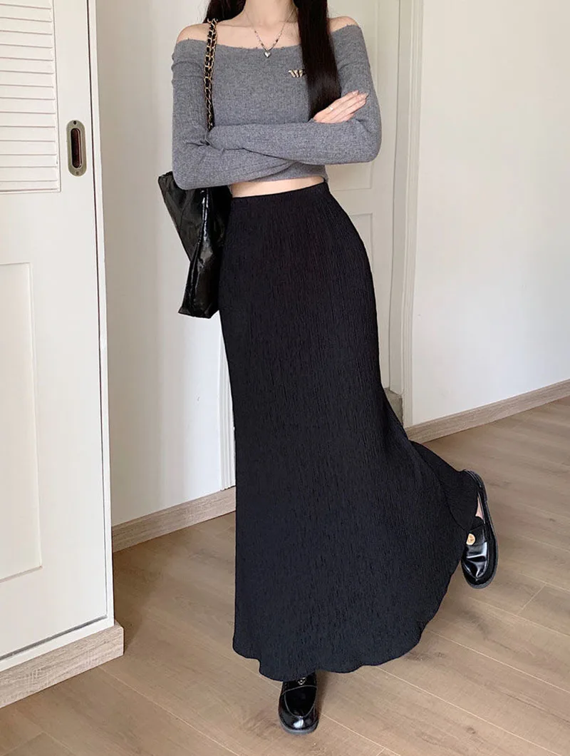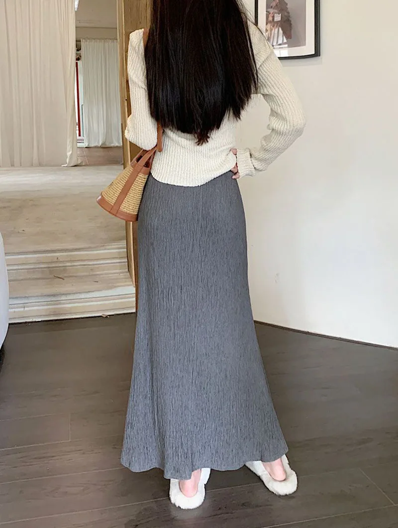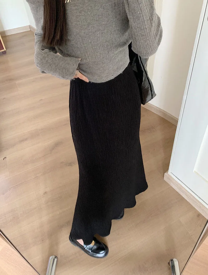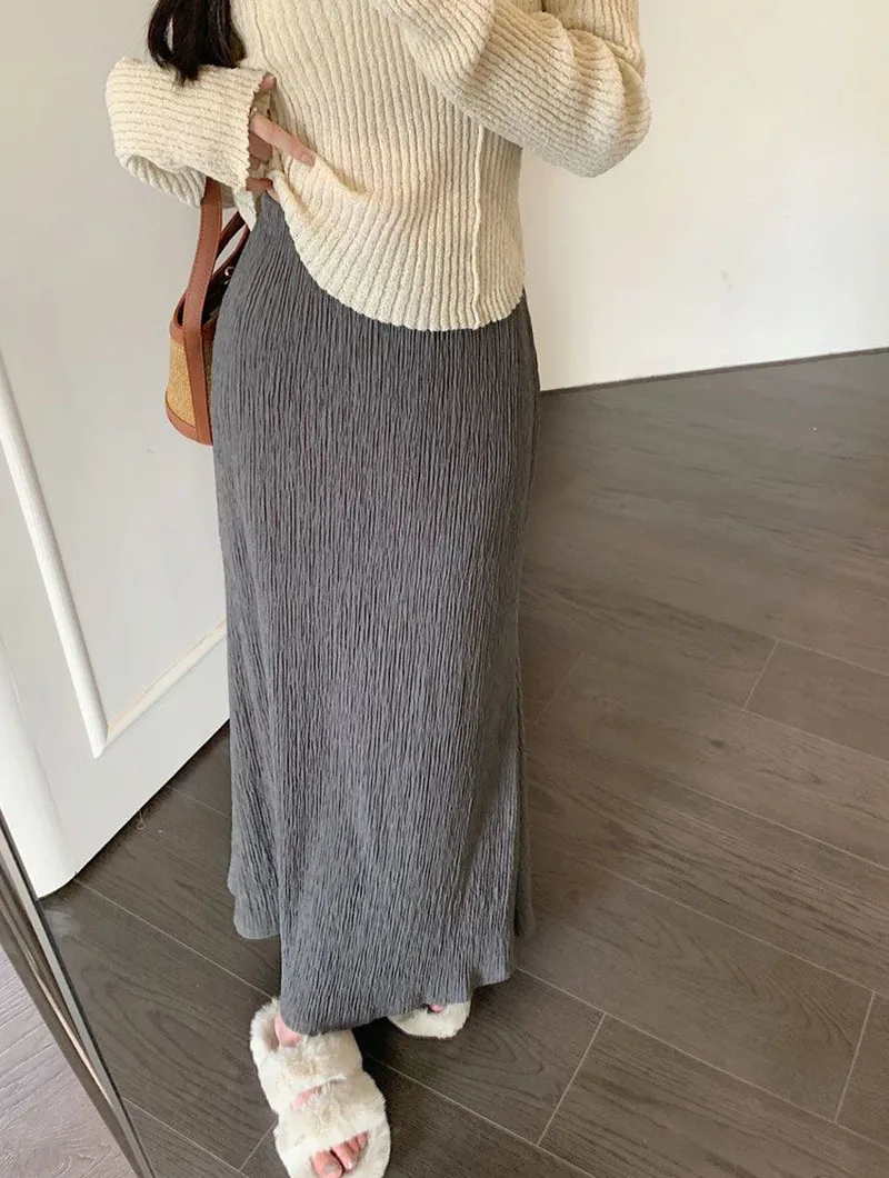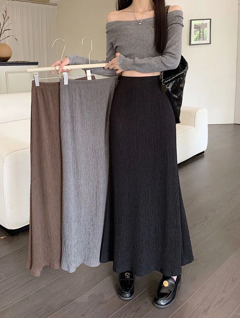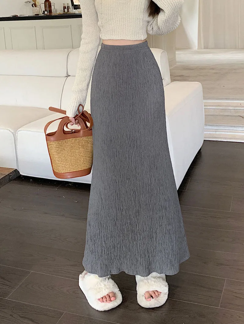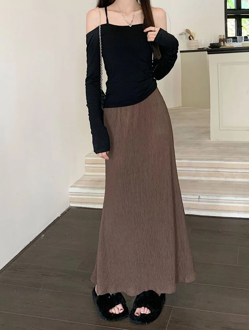 GETADME Xpqbb Lazy Style High Waist Long Skirt Women Vintage Brown Fold Slim Fit Mermaid Skirts Female Elegant Streetwear Midi Skirts