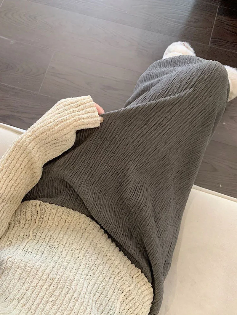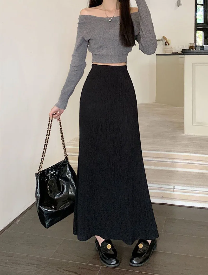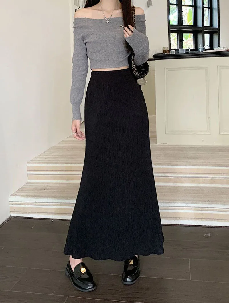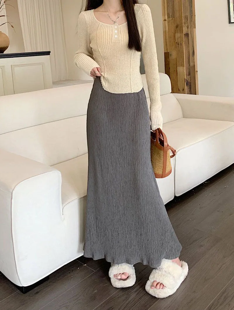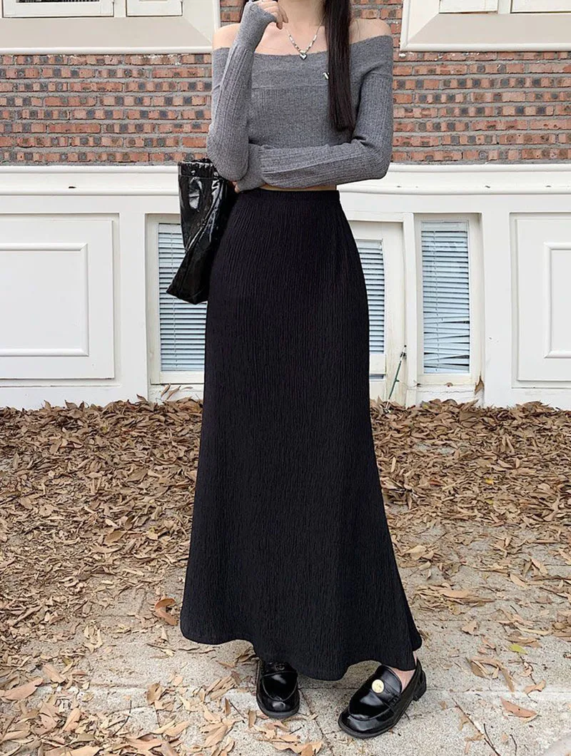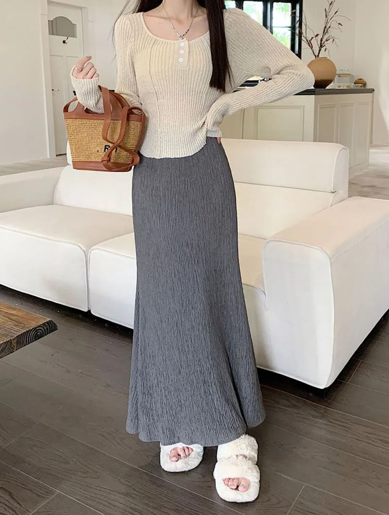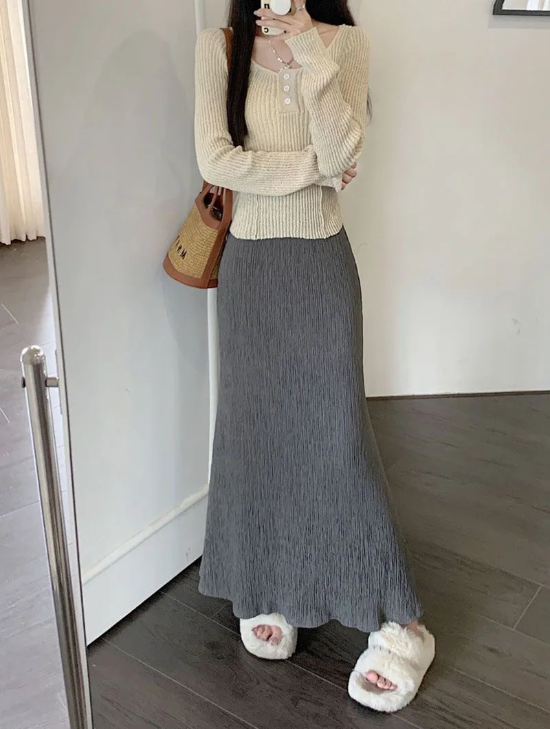 GETADME Xpqbb Lazy Style High Waist Long Skirt Women Vintage Brown Fold Slim Fit Mermaid Skirts Female Elegant Streetwear Midi Skirts