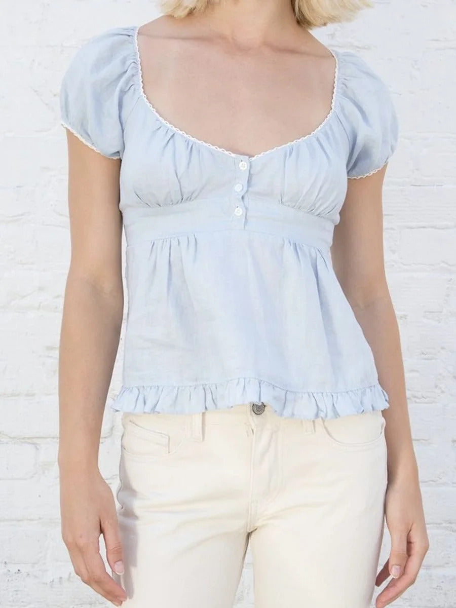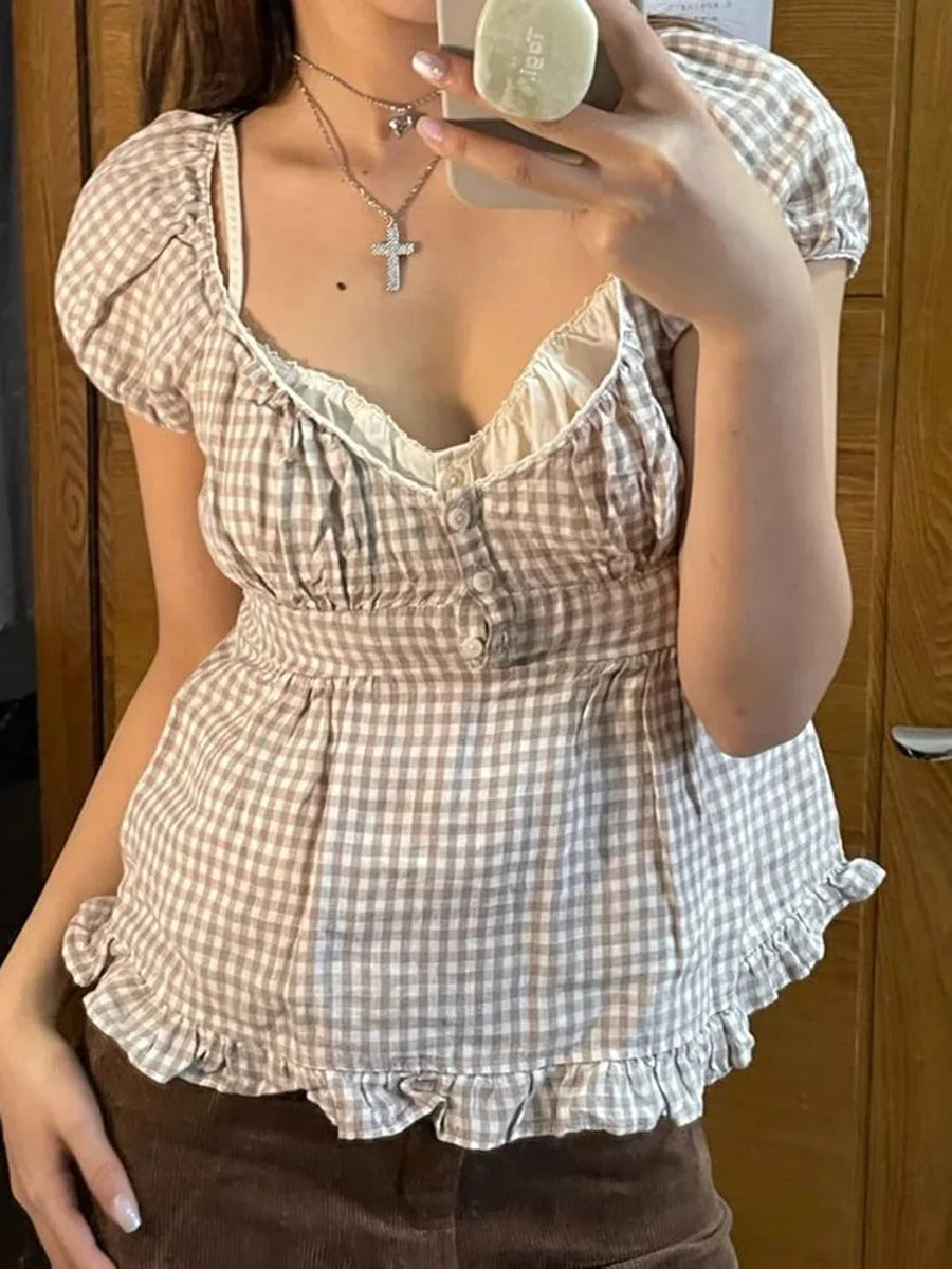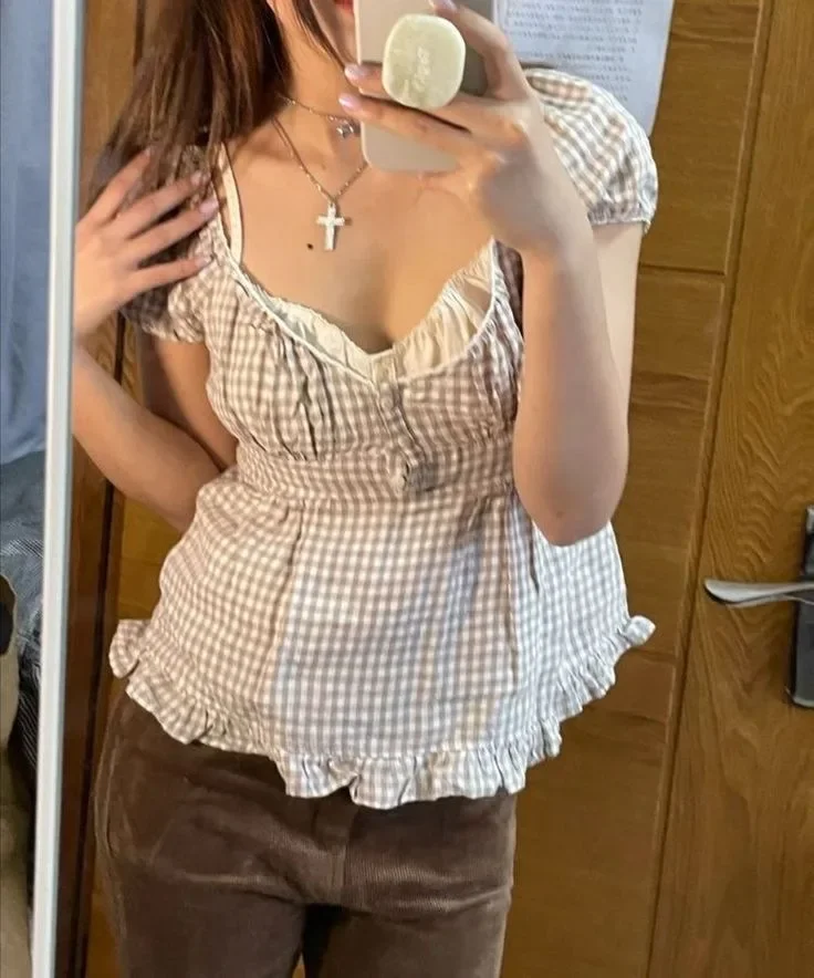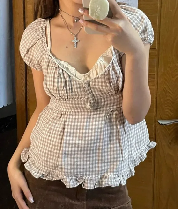 Getadme Y2K Fairy Grunge Crop Top for Women Short Sleeve Lace Patchwork T-Shirt Aesthetic Slim Fit Cute Babydoll Top Tees