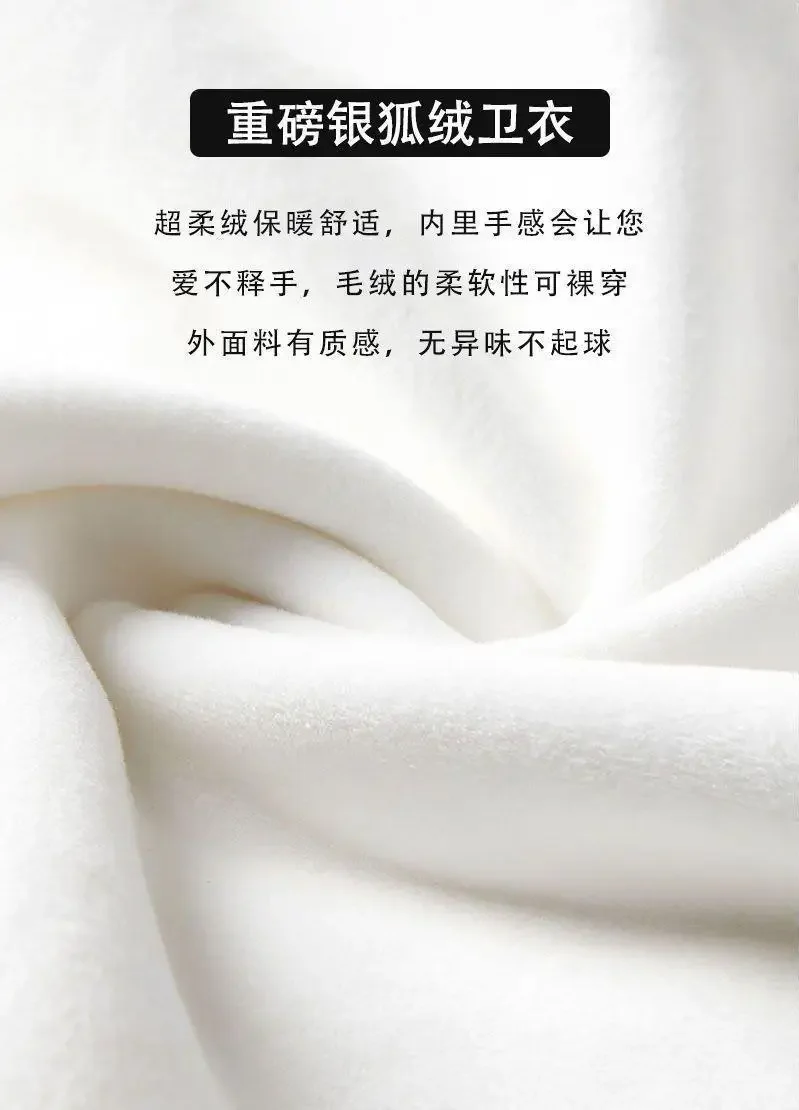 Y2k Korean retro fur collar hoodie letter pattern zipper hooded sweatshirt women's French thickened silver fox velvet jacket