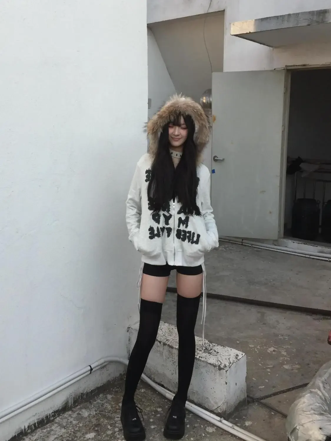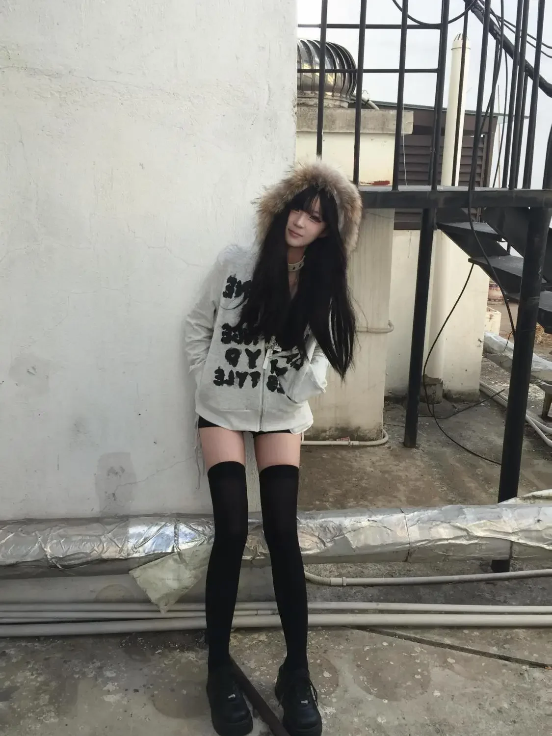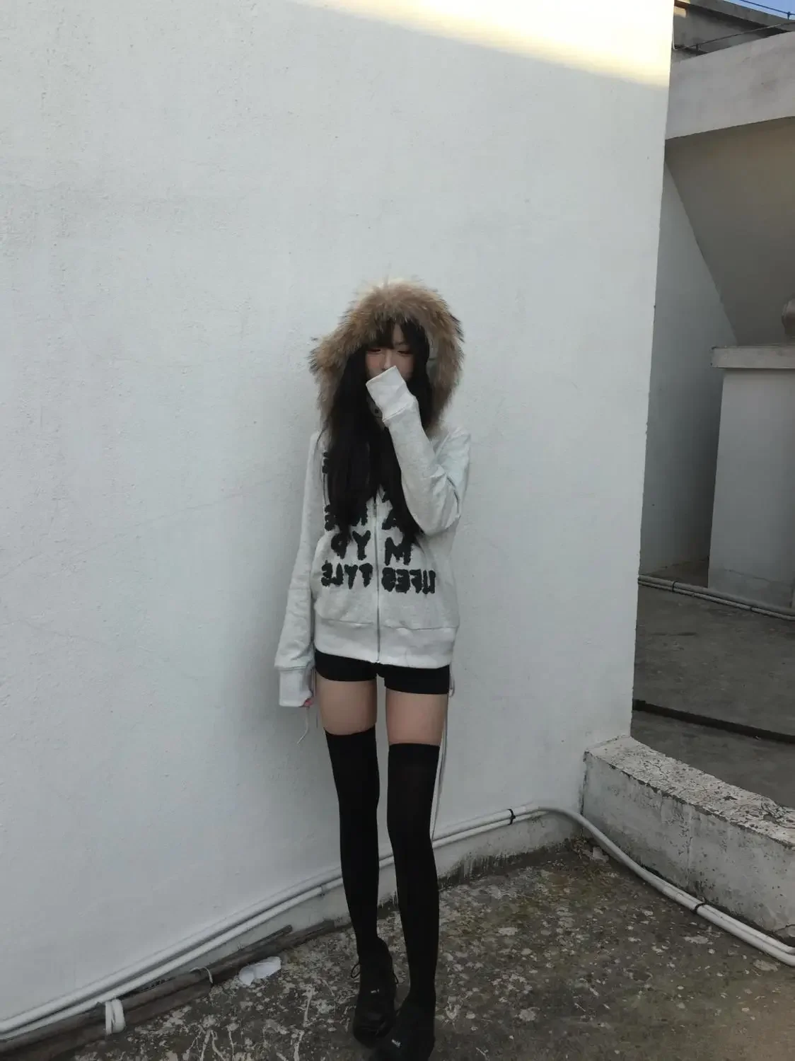 GETADME Y2k Korean retro fur collar hoodie letter pattern zipper hooded sweatshirt women's French thickened silver fox velvet jacket