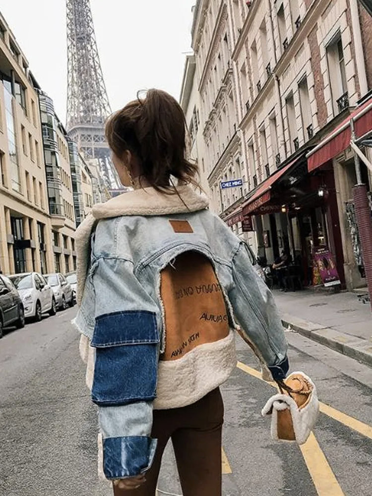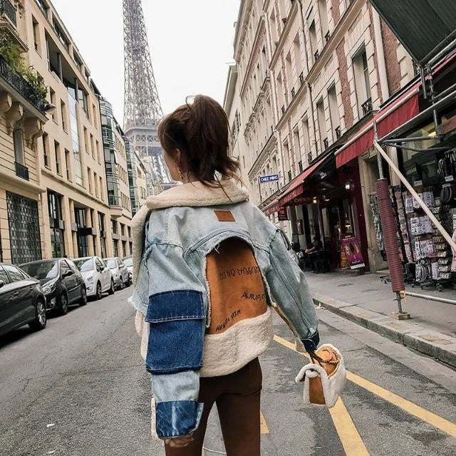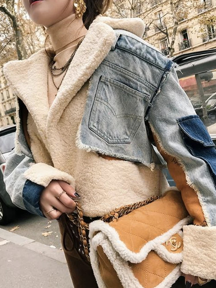 Getadme-Denim Jacket Plush Lamb Wool Lapel Jackets For Women Winter Women's Cold Coat Coats Down Women's Clothing Free Shipping