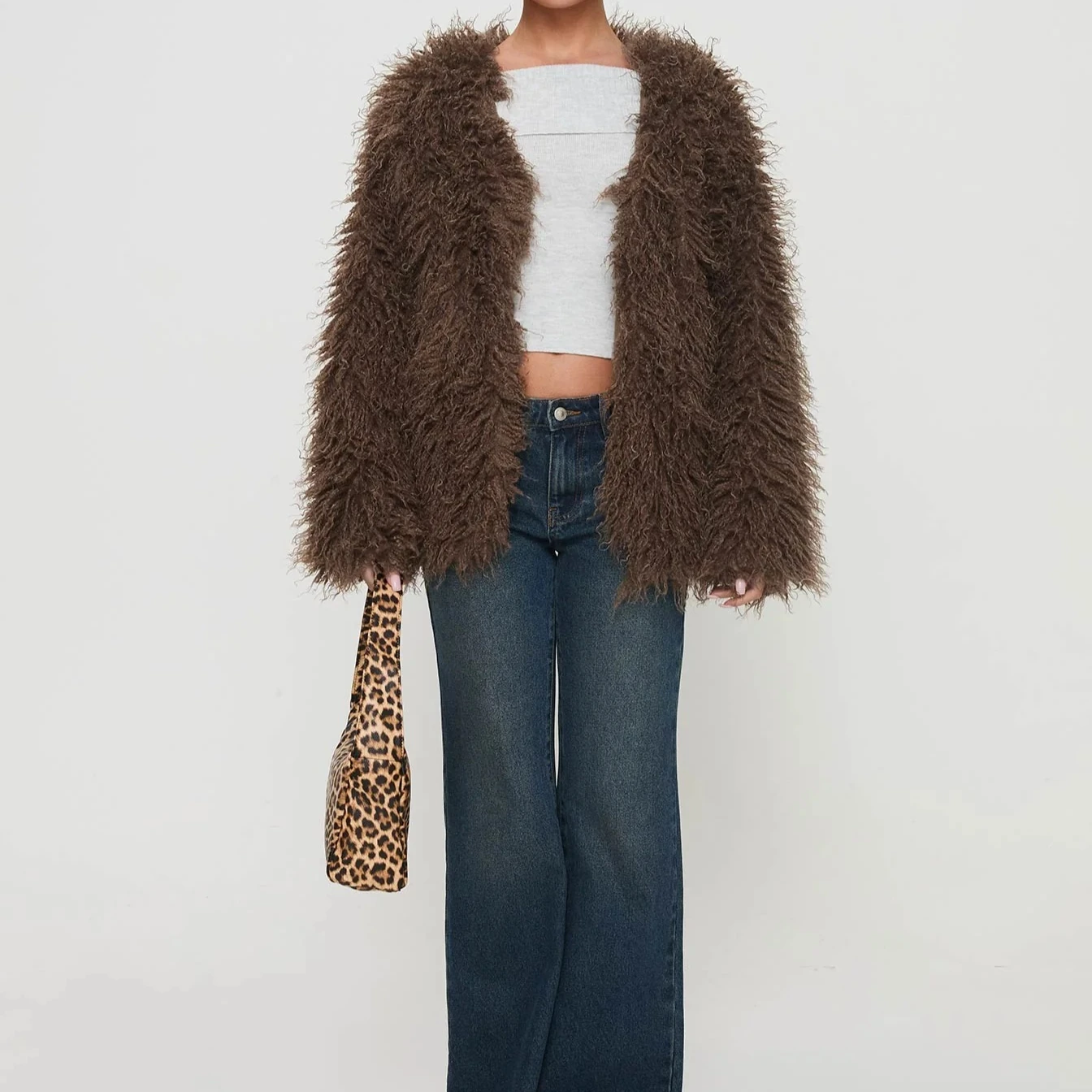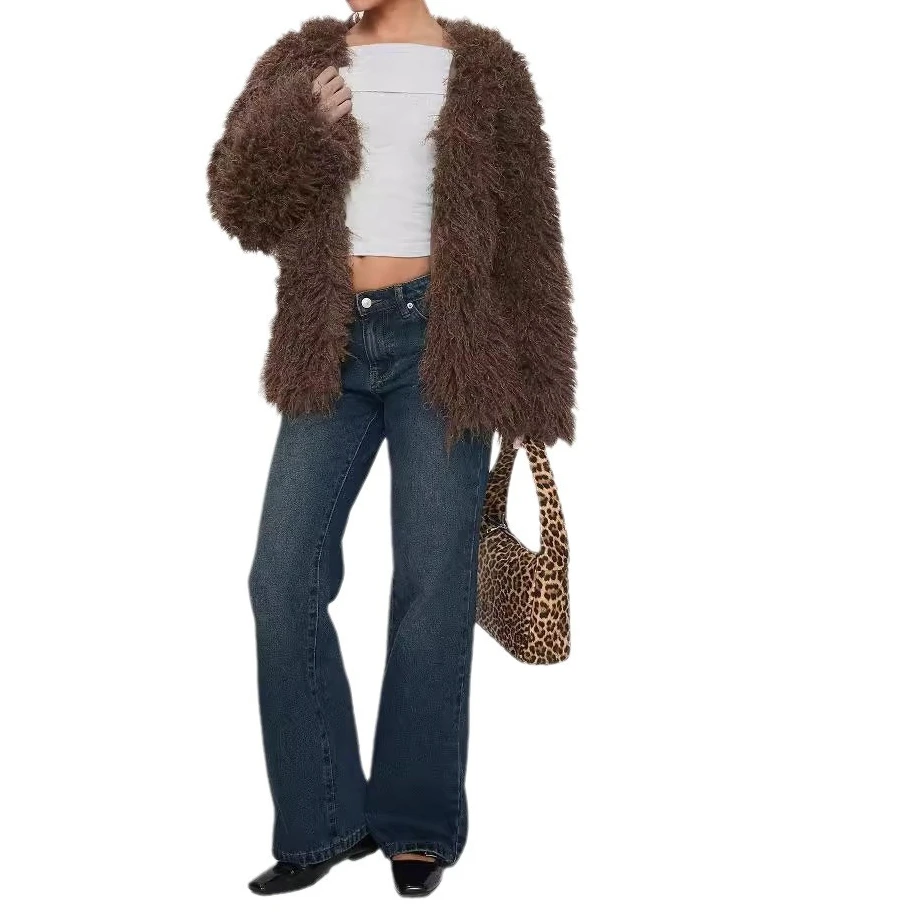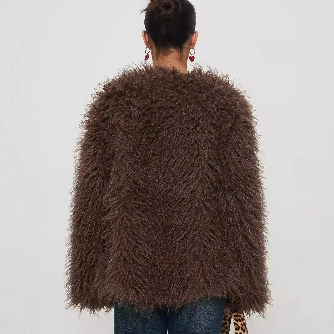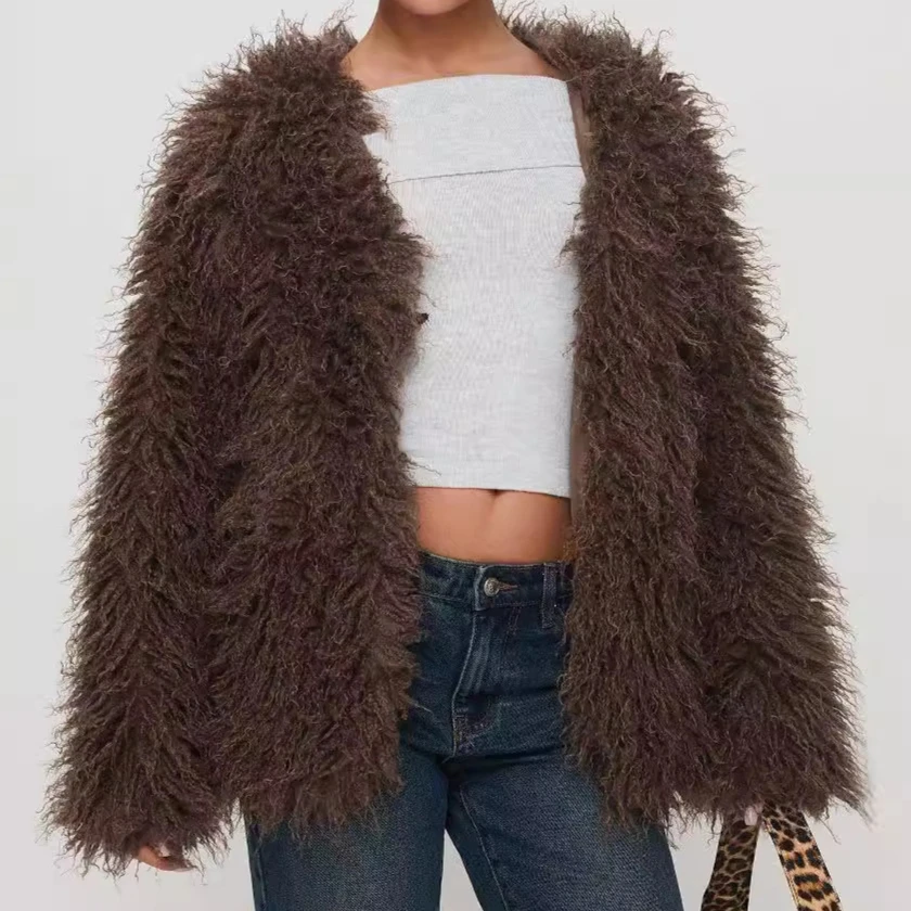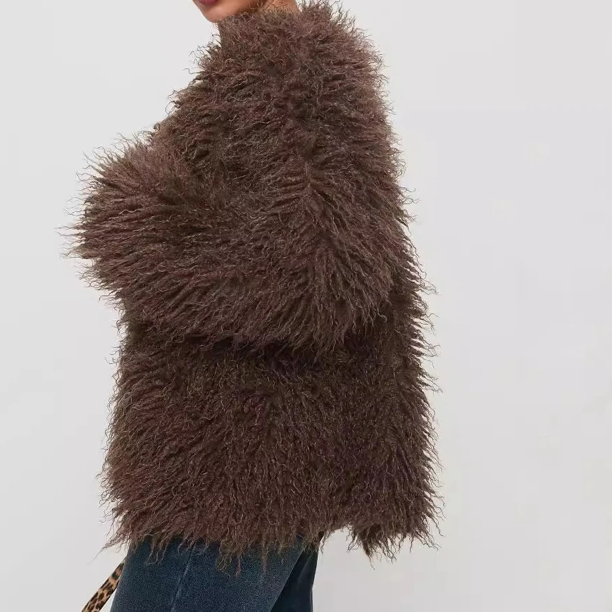 GETADME 2025 European and American Fashion Elegant Fur Imitation Fur Jacket Faux Fur Leather Jacket Chocolate Color Coat Women