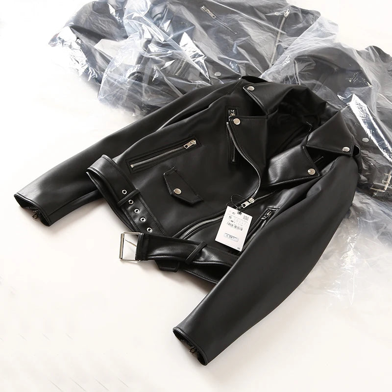 GETADME FTLZZ 2025 New Leather Jacket Women Spring Autumn Coat Women Faux PU Bike Jacket Moto Leather Jacket Lady Casual Street Outwear