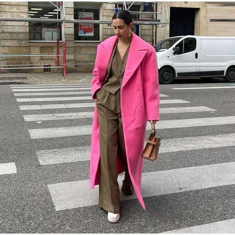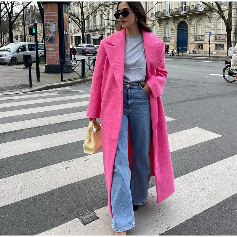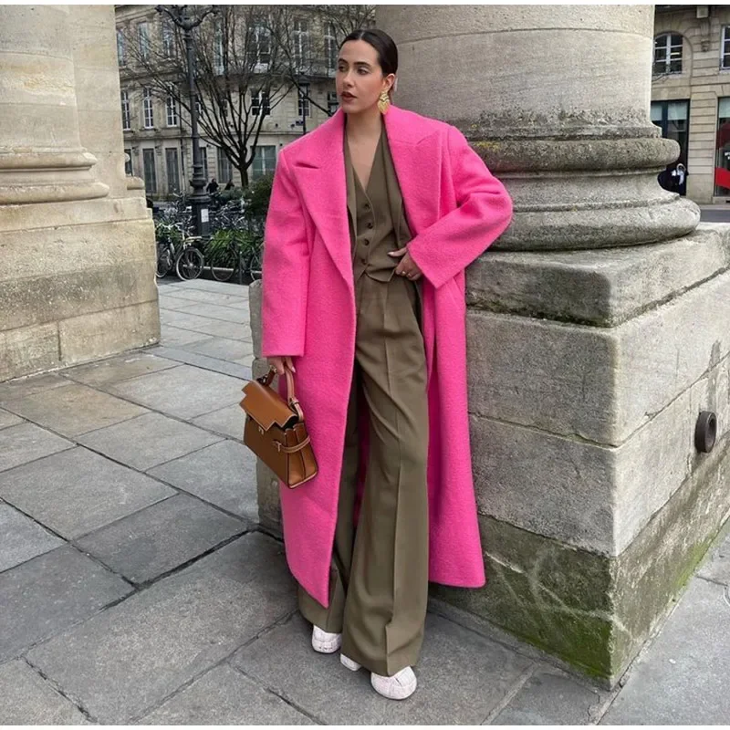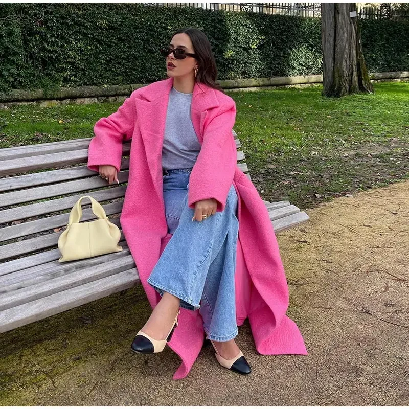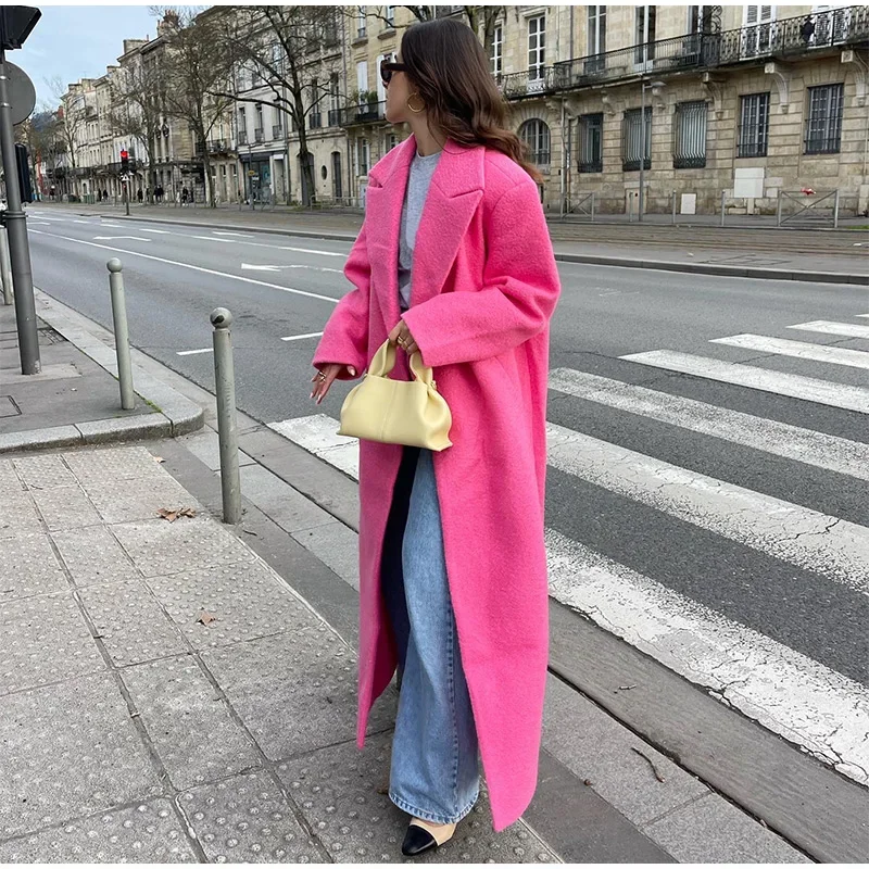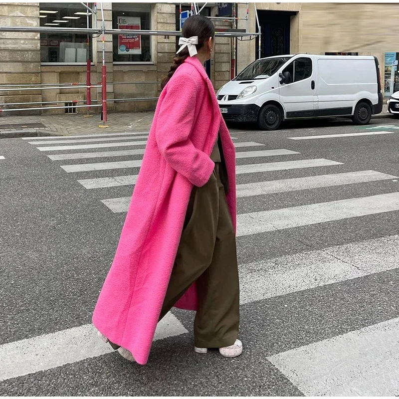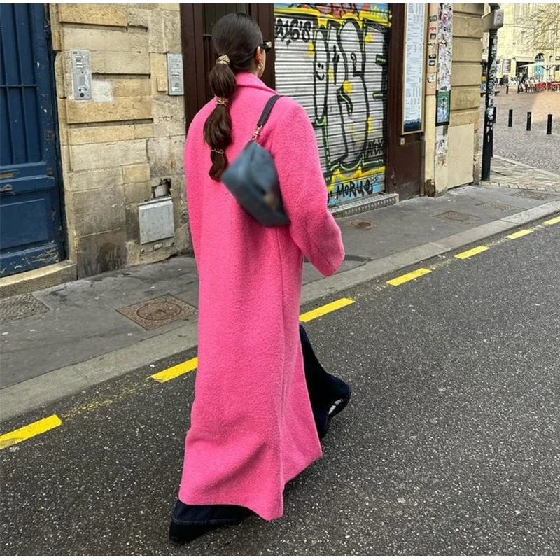 GETADME Lapel Woolen Long Coats Women Elegant Turn-down Collar Long Sleeve Jacket Female Winter Autumn Long Sleeve Street Lady Overcoats