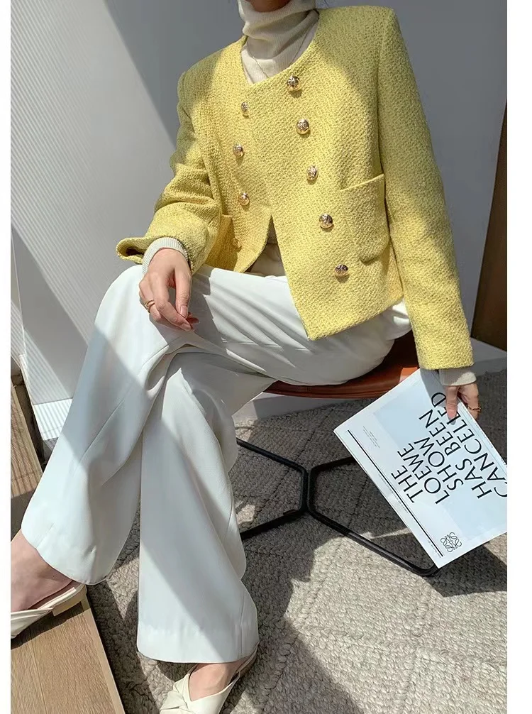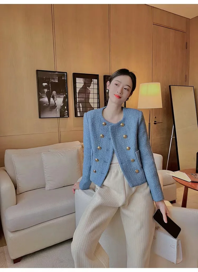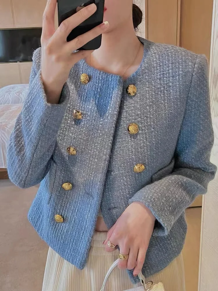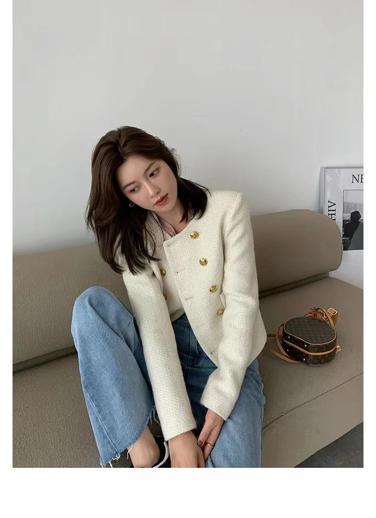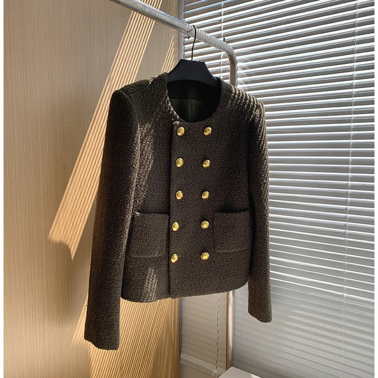 GETADME New Designer Fashion Winter Autumn Women Casual Short Jackets Coat Elegant Small Fragrance Lady Double Breasted Outwerwear