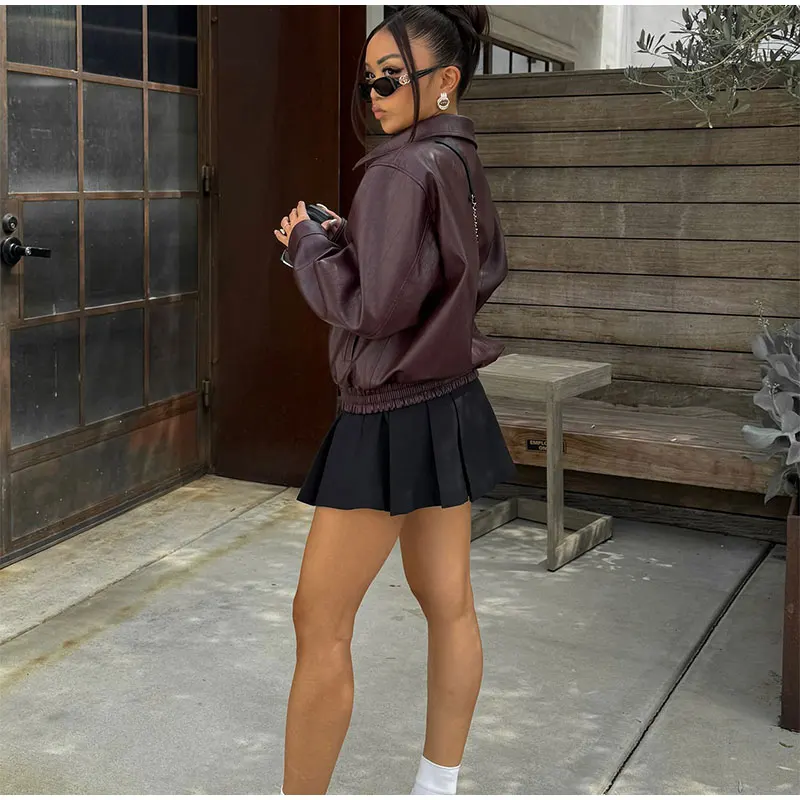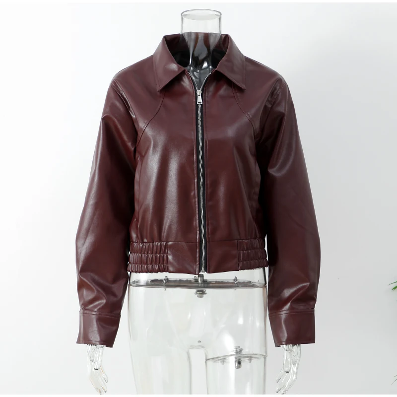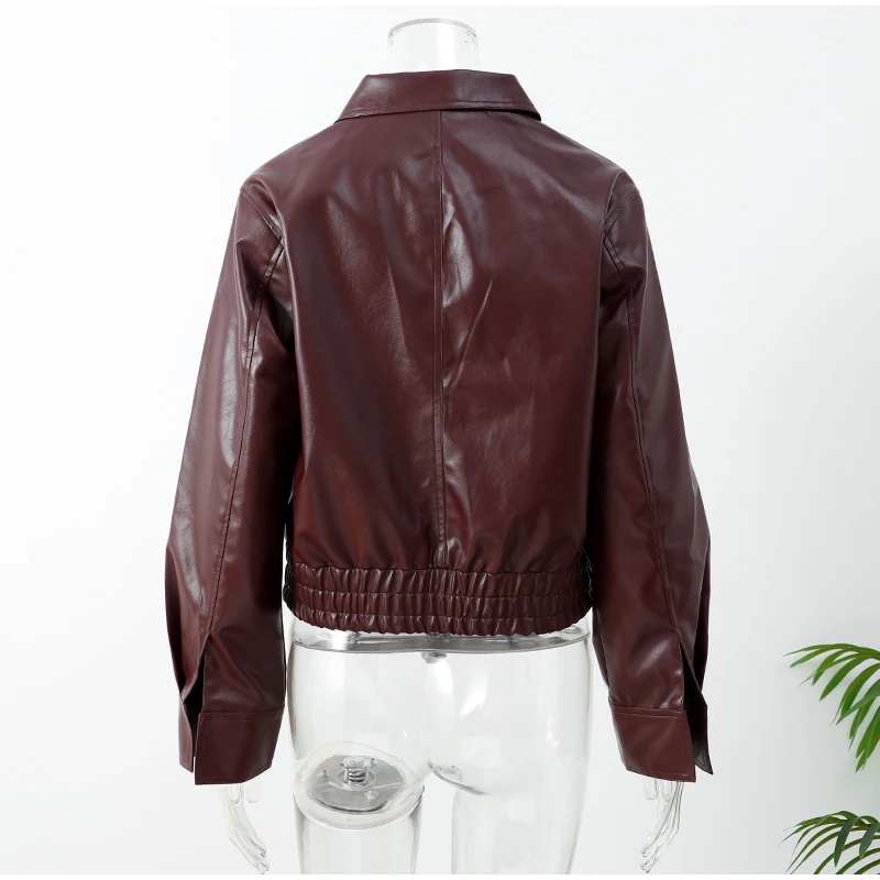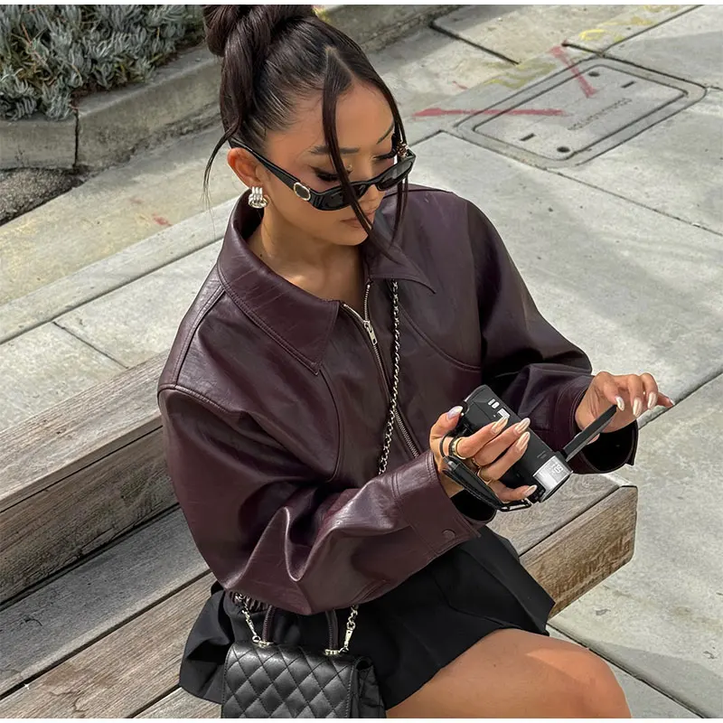 GETADME Pu Leather Women's Jaqueta Chic Lapel Long Sleeves Cropped Zipper Jackets 2025 New Female Autumn Short Coat Fashion Outerwears