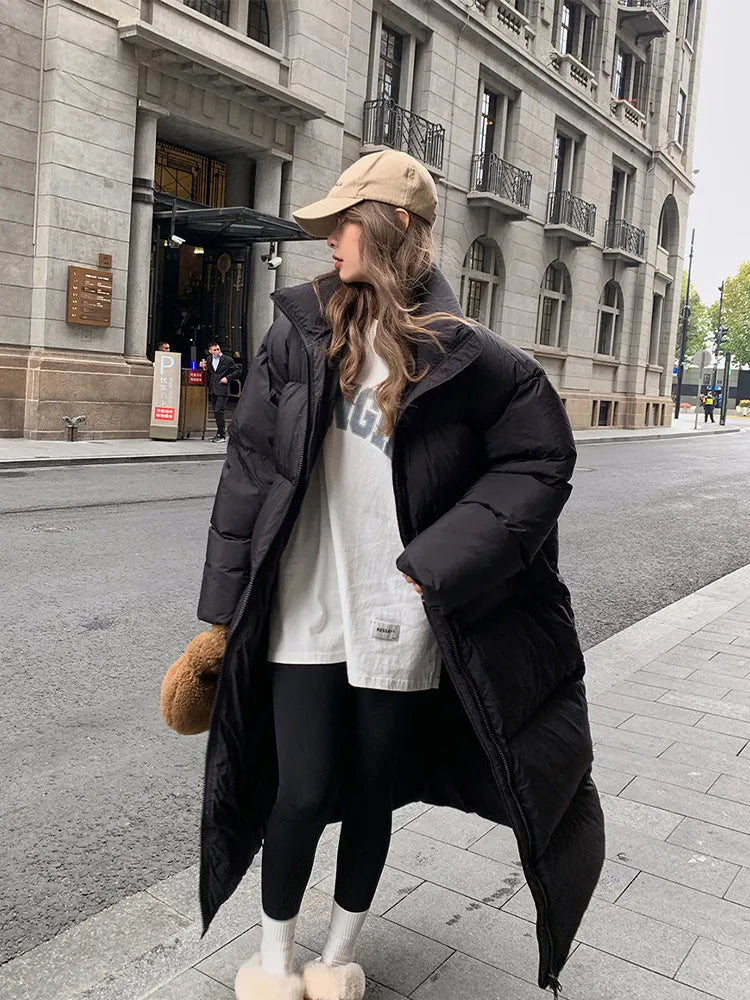 Oversized Long Coat Women Winter Down Cotton Jacket Female Korean Fashion Padded Overcoat Ladies Casual Thick Warm Zipper Coats
