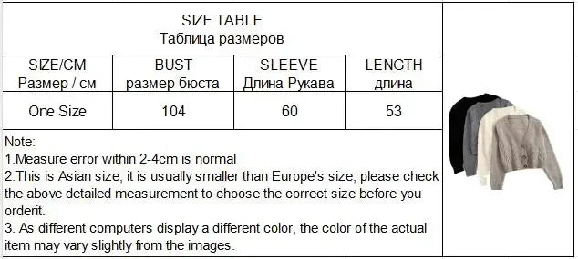 V Neck Cropped Cardigan Women Long Sleeve Twist Knitted Sweater Coats Autumn Winter Keep Warm Korean Fashion Jacket Cardigan