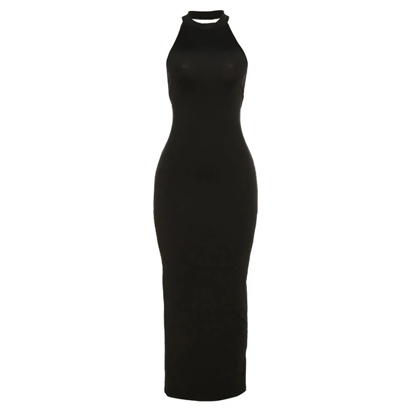 GETADME Sexy Backless Halter Elegant Bandage Maxi Dress Outfits for Women Sleeveless Summer Club Party Black Gown Dresses