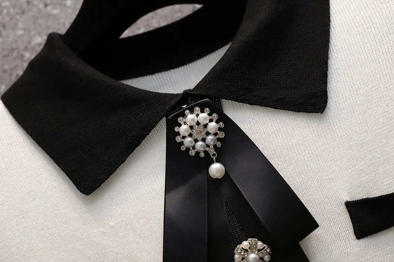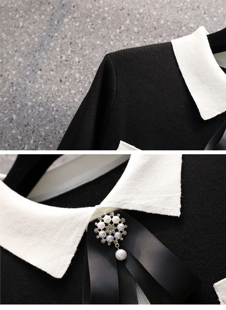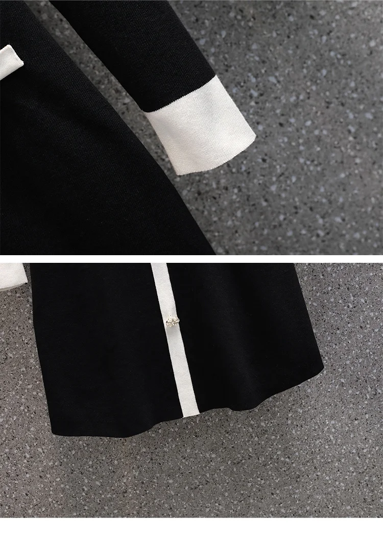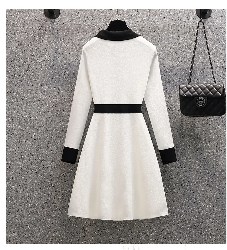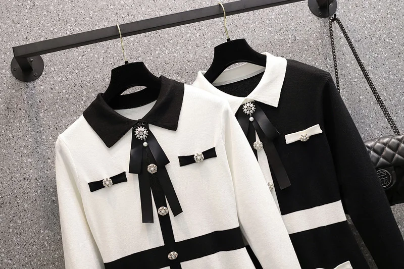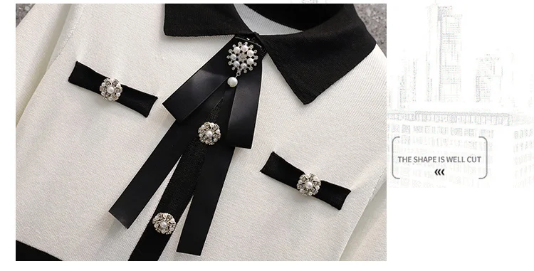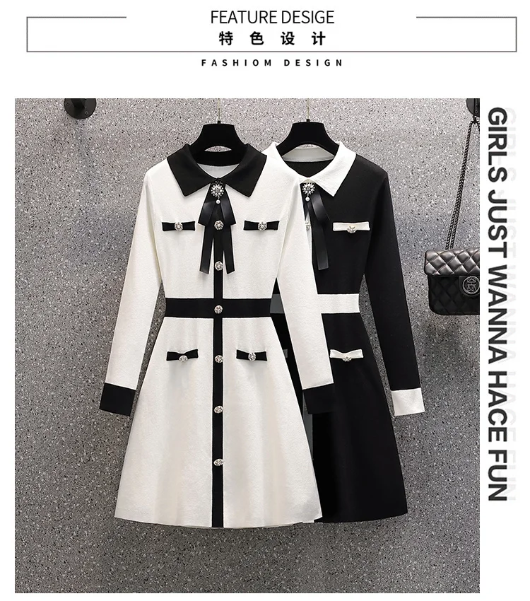 GETADME Small Fragrance Fall Winter Knitted Sweater Dress Women Bow Tie Buttons Vintage Party Mini Dress Elegant Casual Chic Robe Femme