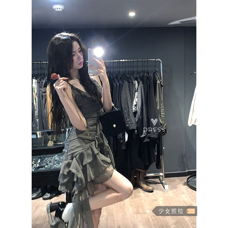 Ruffled Sling Dress Irregular Robe Femme Women's Summer Dresses Chic V-NeckSlim Sweet Short Sexy Dress Party Club Dress