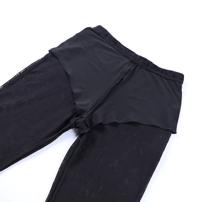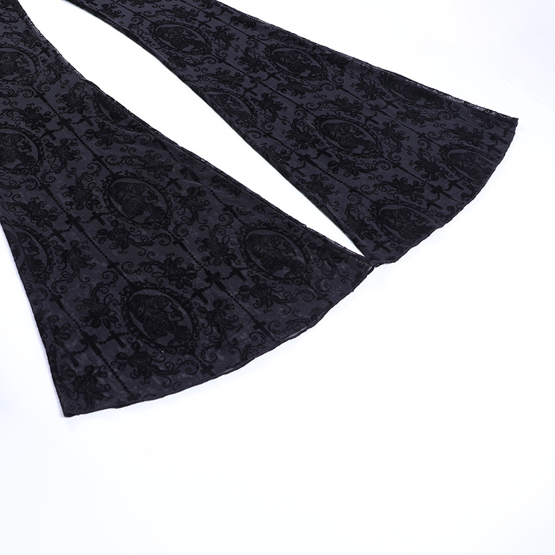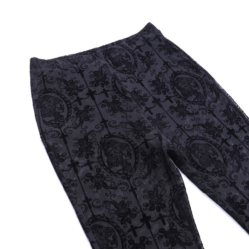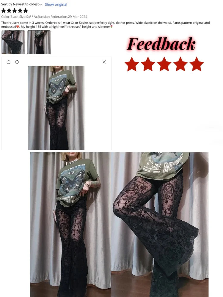 GETADME AltGoth See Through Mesh Pants Women Dark Gothic High Waist Lace Flare Pants Vintage Streetwear Fairy Grunge Race Trousers Femme