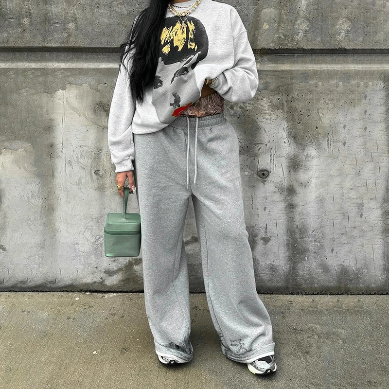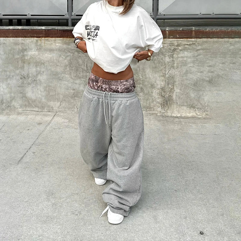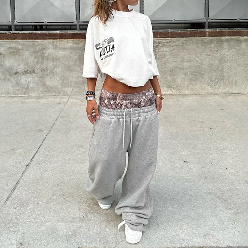 GETADME Harajuku Chic Patchwork High Waist Drawstring Sweatpants Women Autumn&Winter Casual Pockets Workout Long Casual Pencil Trousers