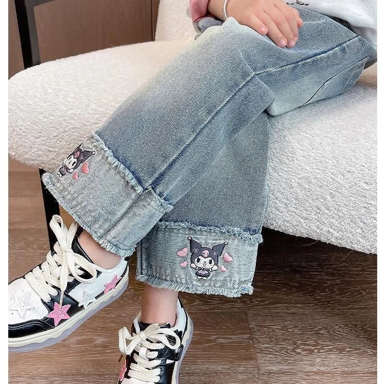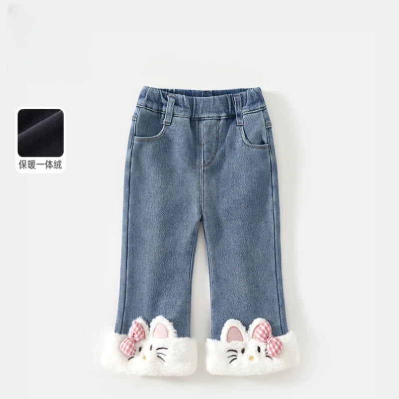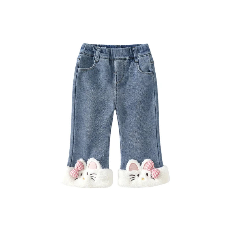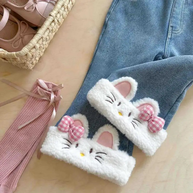 GETADME Sanrios Girl Pants Autumn Winter Hello Kittys Child Cowboy Bell Bottoms Children's Clothing Keep Warm Thicken Leisure Trousers