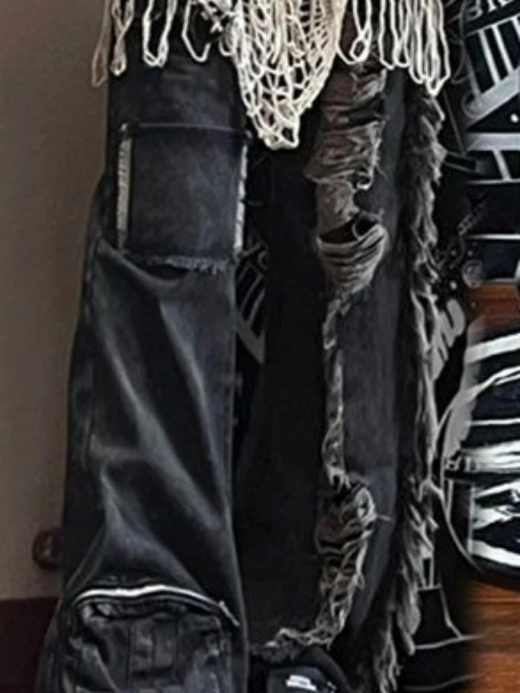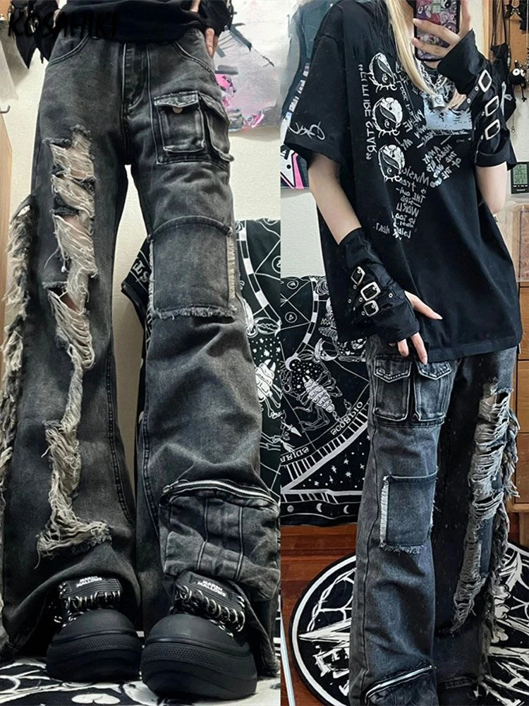 GETADME Vintage Grunge Jeans Woman Vintage Punk Hole Trousers Streetwear High Waist Wide Leg Y2k Aesthetic Baggy Denim Pants Streetwear