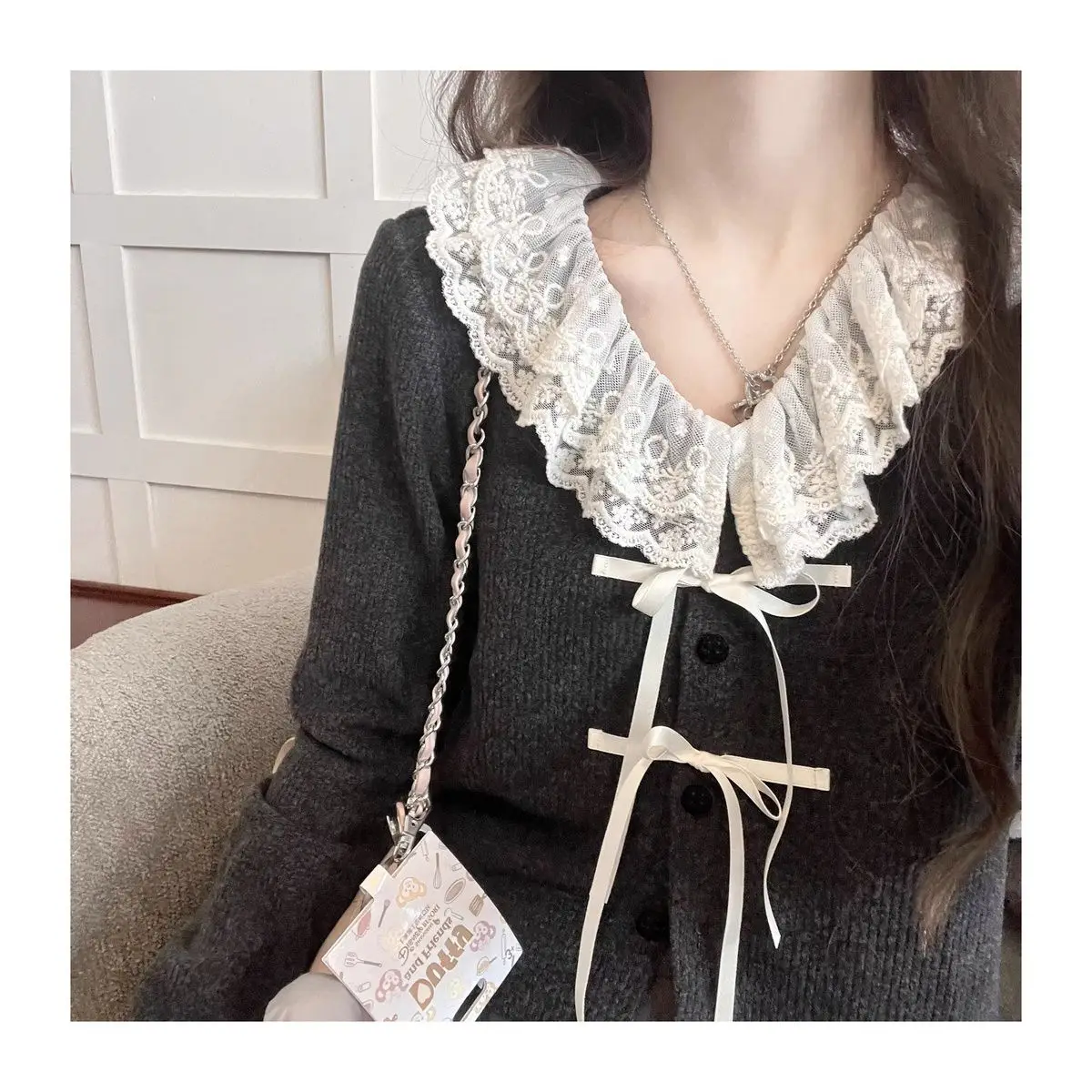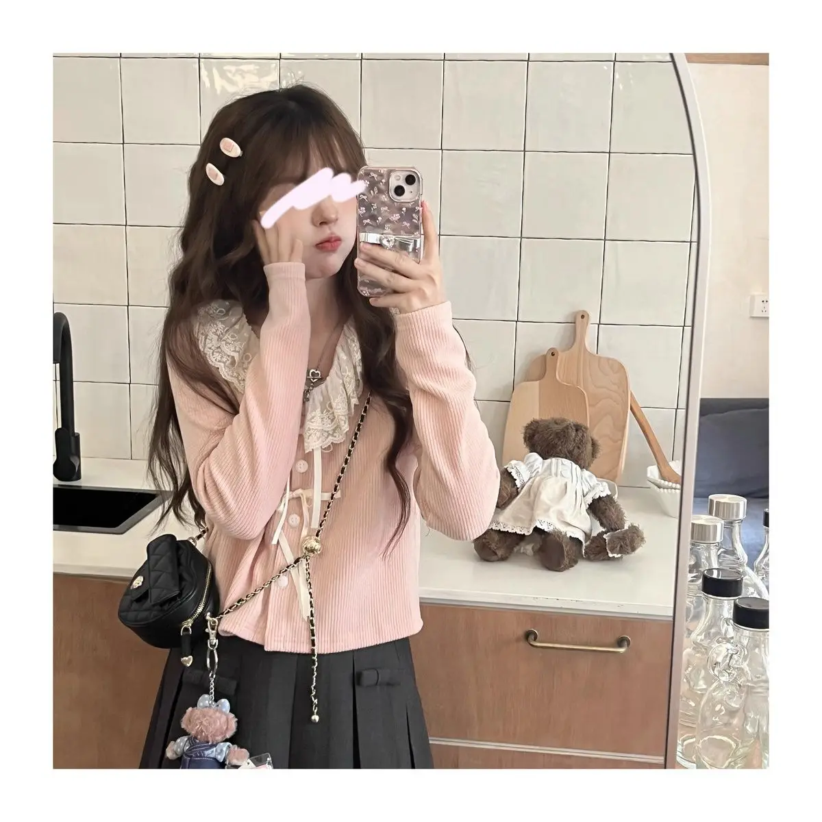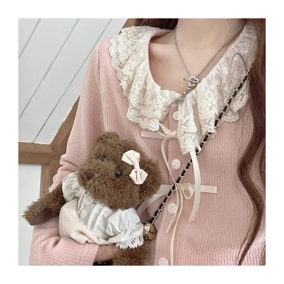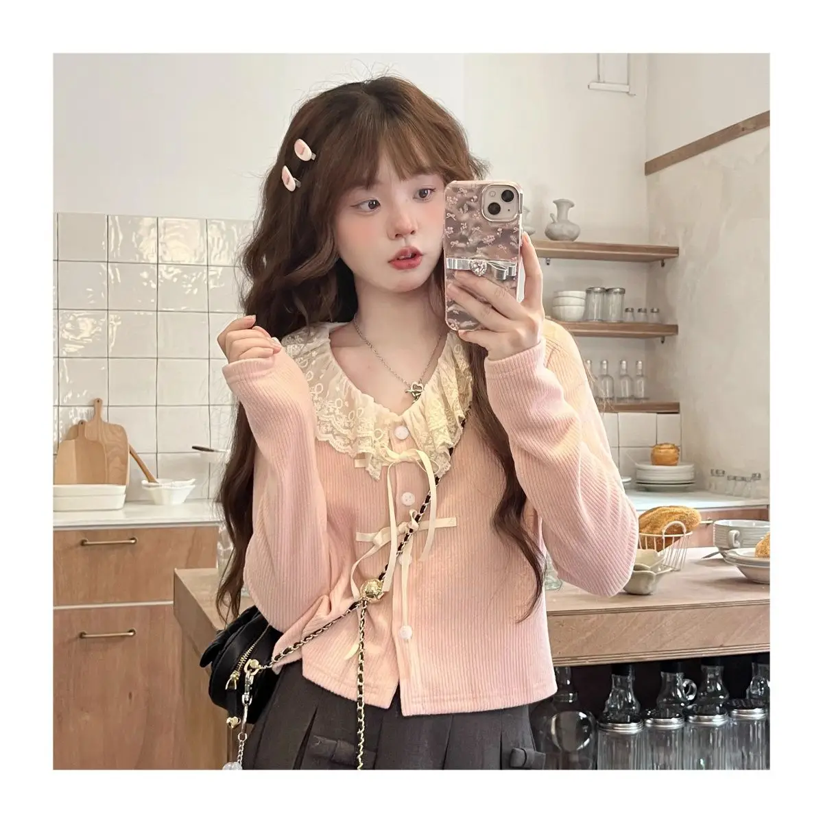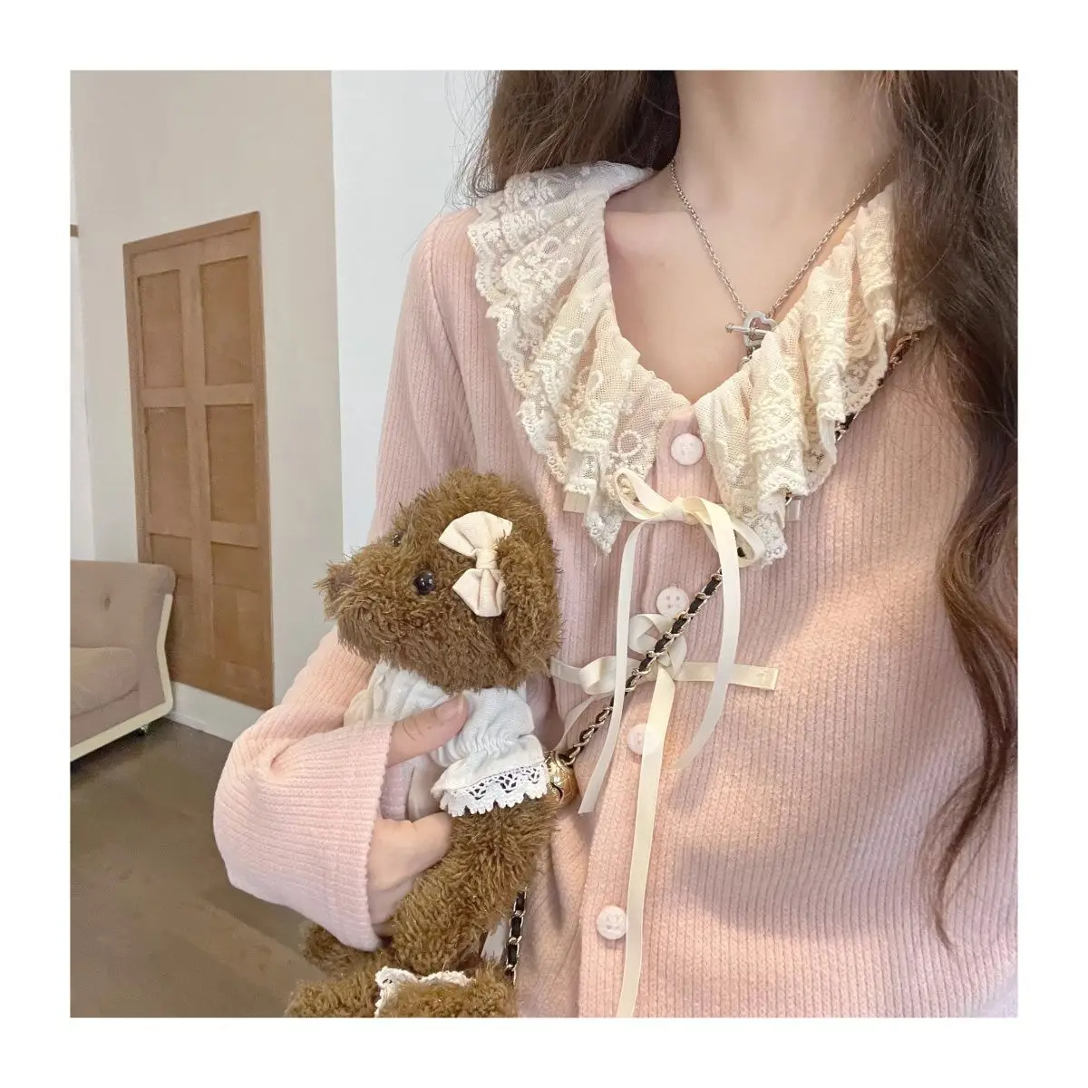 GETADME Kawail Lace Up Knitted Cardigan Sweater Japanese Fashion Women's Aesthetic Knitwear Spring Cute Sweet Preppy Korean