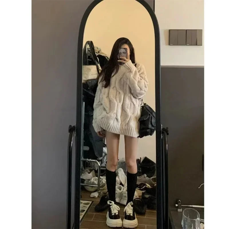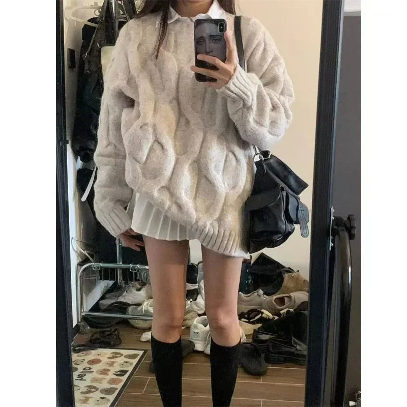 GETADME Deeptown Vintage Japanese Style Women Sweaters Old Money Casual Preppy Knitted Pullovers Loose Twists Knitwears Autumn Jumper