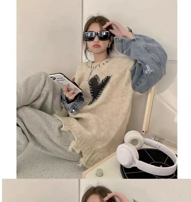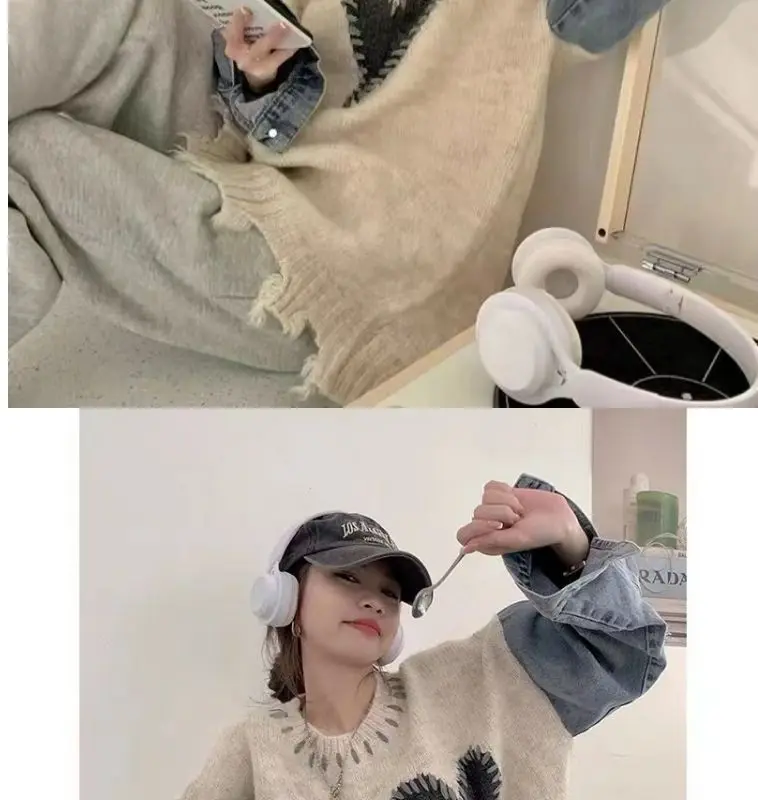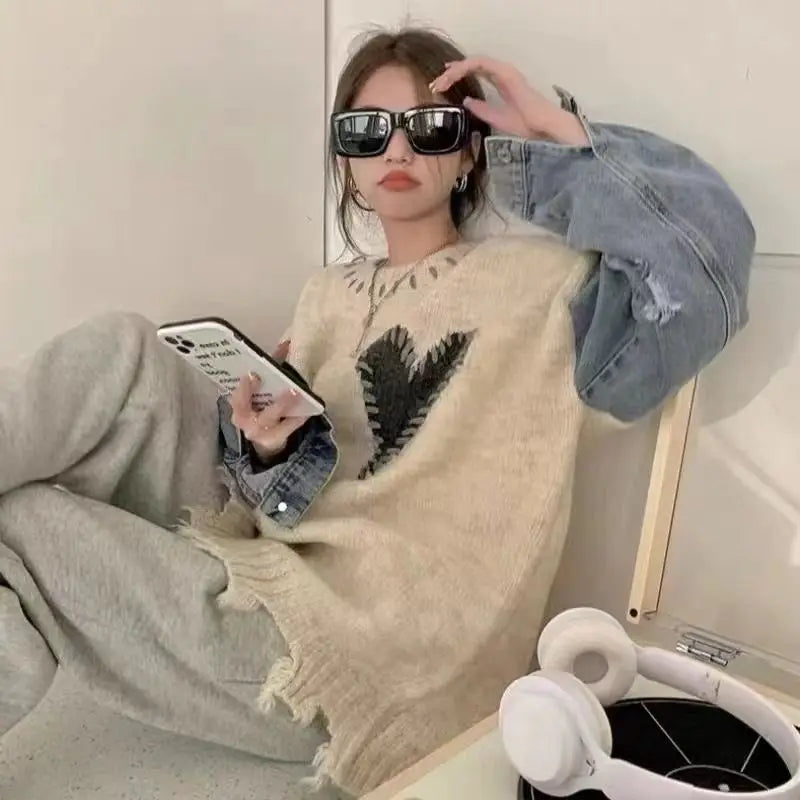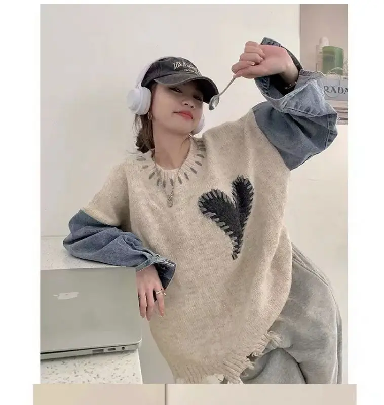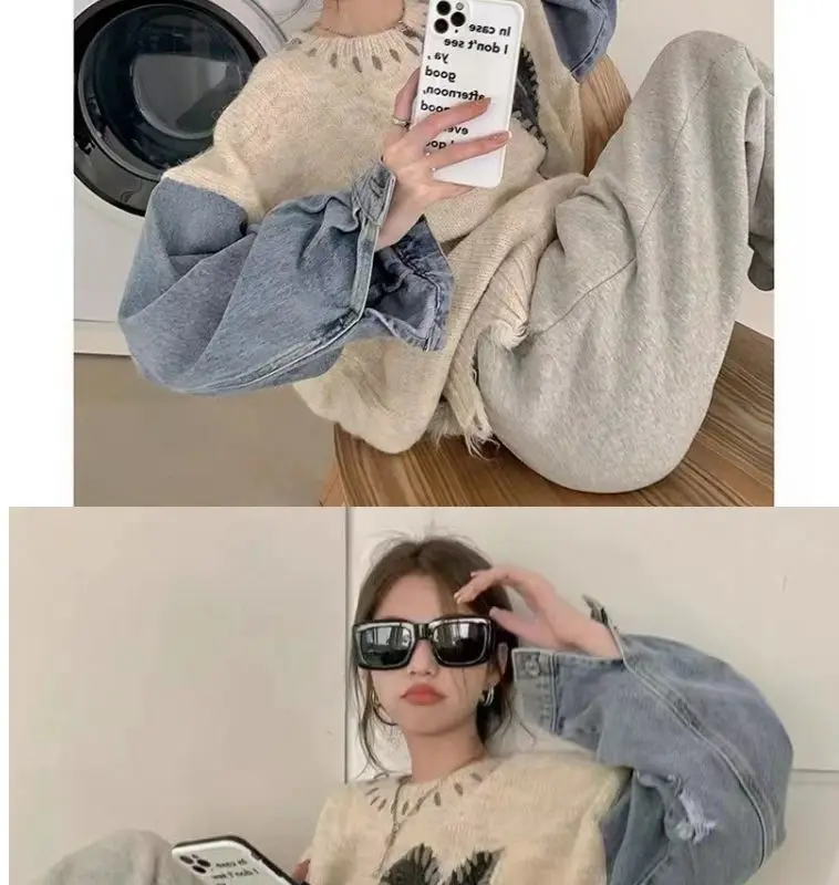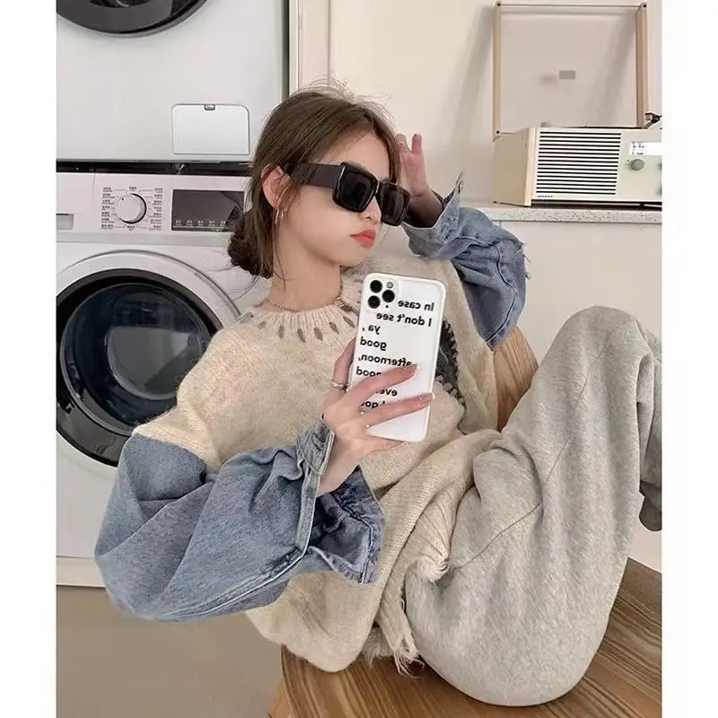 GETADME Korean Patchwork Long Sleeve Sweater Irregular Loose Women Clothes Knitting All-match Pullovers Autumn Winter Fashion Top Tee