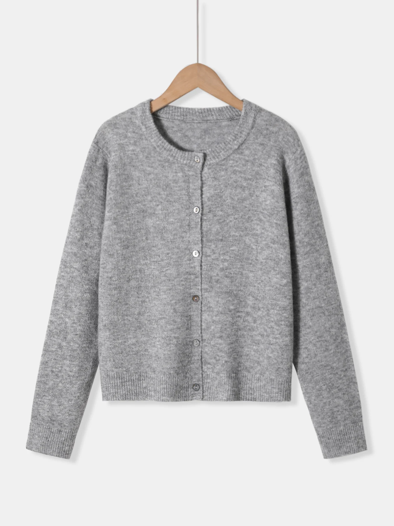 GETADME Ladies soft and comfortable sweaters solidcolor cardigans fashionable and casual autumn and winter knitted sweaters round n